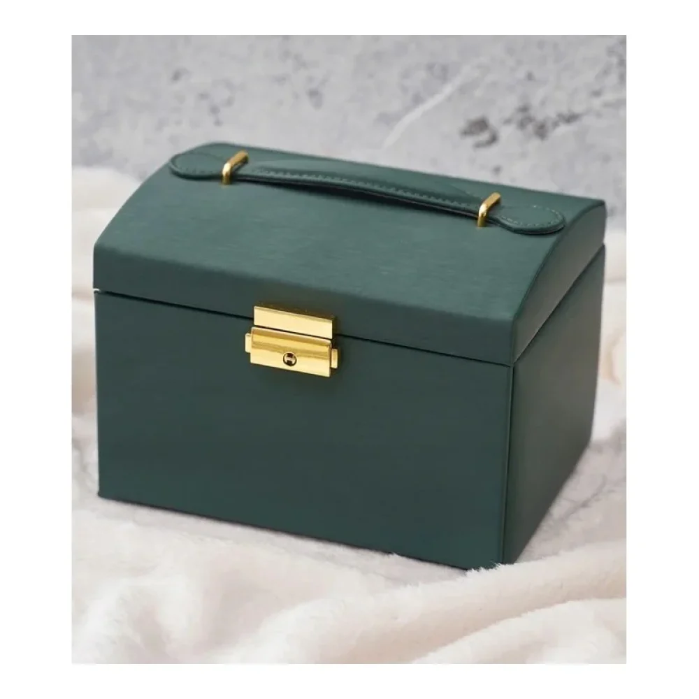 Porta-Joias Baú Verde Estojo Organizador com Chave