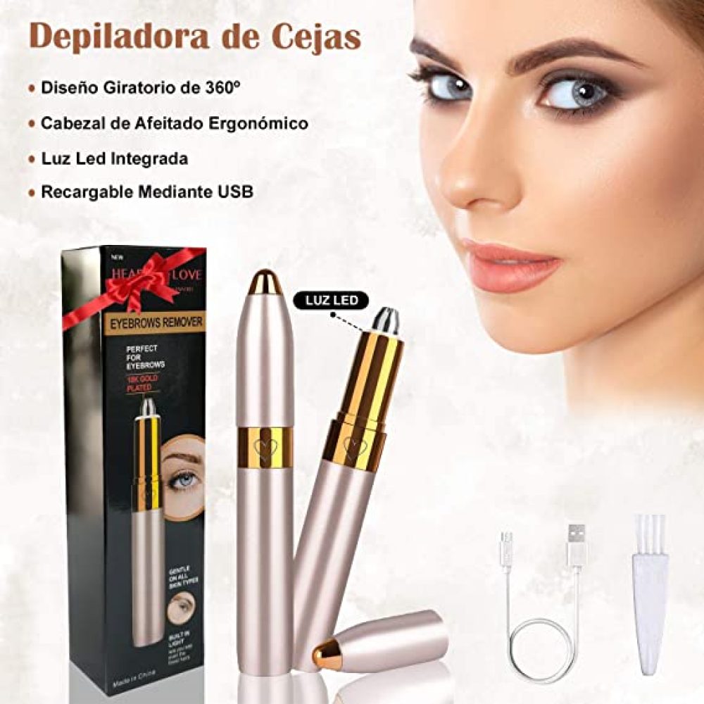 Para uma depilação perfeita do corpo, está incluído um depilador de sobrancelhas portátil com luz LED e recarregável via USB de Oferta
