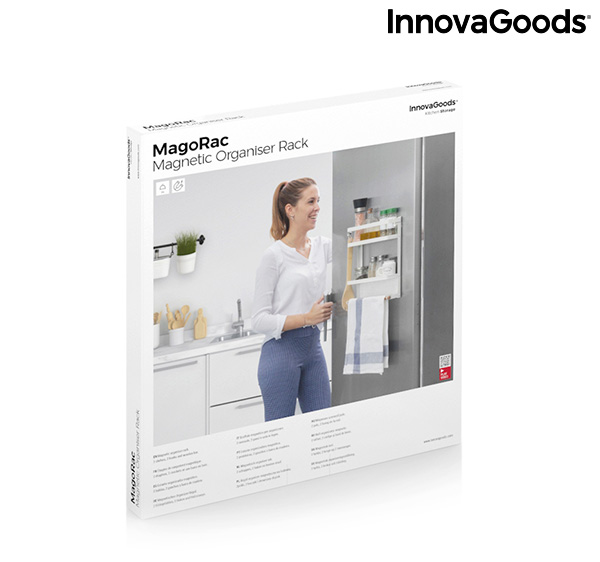 Uma versátil e resistente prateleira organizadora magnética, muito útil para aproveitar espaços e ter à mão os objetos de cozinha, banho, etc., como frascos, latas, rolos de papel, panos, toalhas, utensílios de cozinha, produtos de limpeza, etc. Inclui duas prateleiras que podem ser penduradas com facilidade, uma barra de segurança para evitar que o objetos caiam, dois ganchos móveis e uma barra de madeira para rolos, panos, etc. Permite poupar espaço e manter a ordem. A prateleira suporta até 5 kg de peso e é ideal para colocar no frigorífico ou na lateral da máquina de lavar ou de secar, etc. O inovador design magnético facilita a instalação sem necessidade de montagem nem de ferramentas, uma vez que…