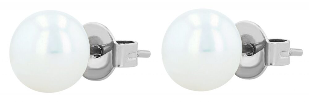 Os brincos da marca Akzent são feitos de aço inoxidável e adicionalmente decorados com uma pérola falsa. Os brincos de pérolas falsas estão disponíveis em tamanhos diferentes. Os pinos de orelha são presos ao furo da orelha com um parafuso de orelhas, que também é feito de aço inoxidável.