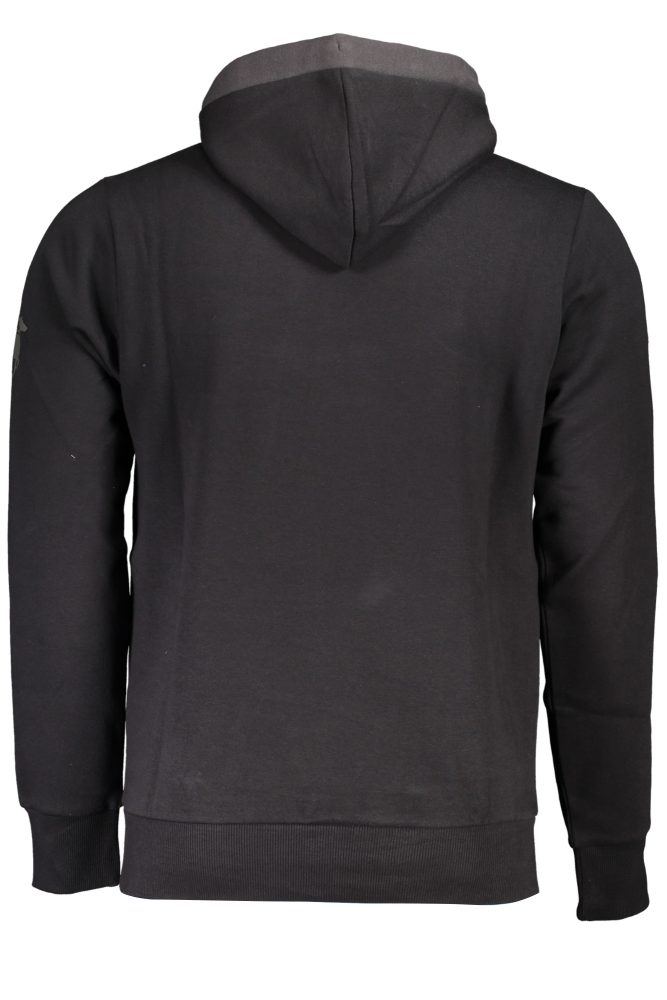 Camisola de manga comprida com capuz, detalhes contrastantes, logótipo estampado.