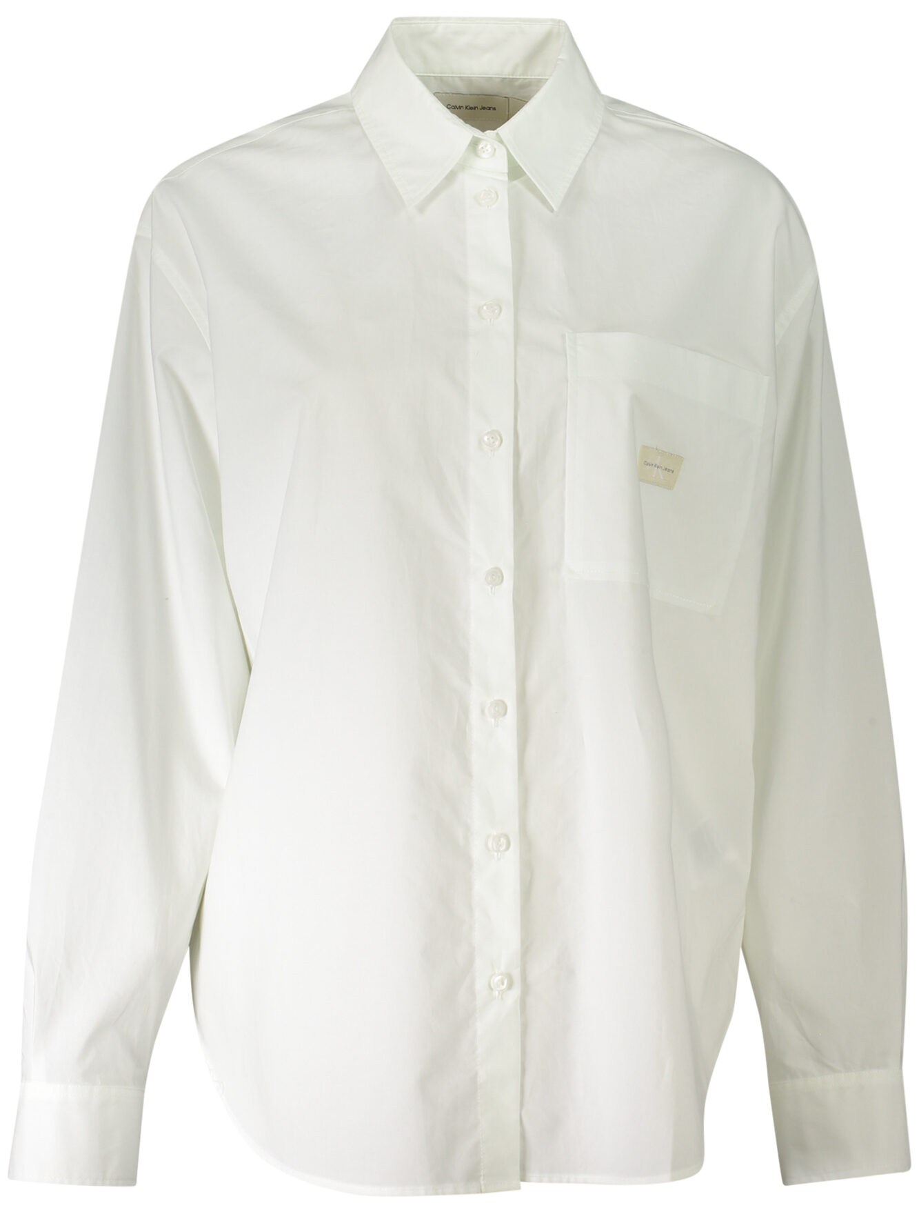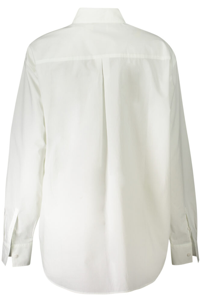 Camisa de manga comprida, gola aberta, punhos com 1 botão, 1 bolso no peito, logótipo