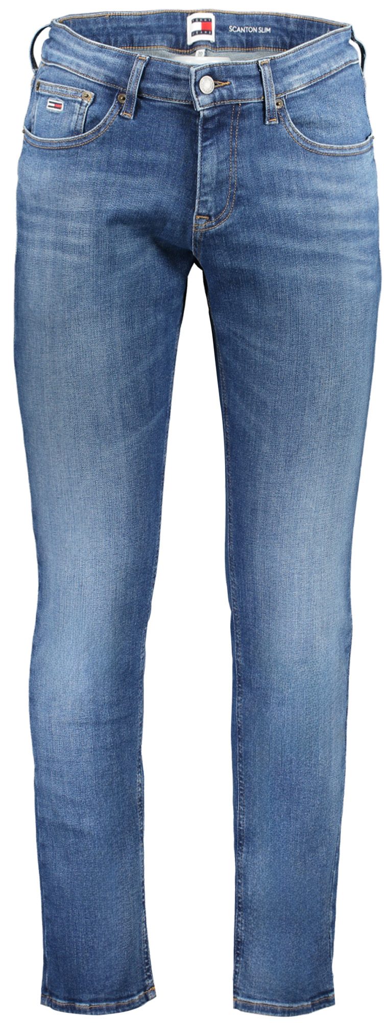 Calças de ganga slim com 5 bolsos, efeito desbotado, botão, zíper , logótipo, algodão orgânico.