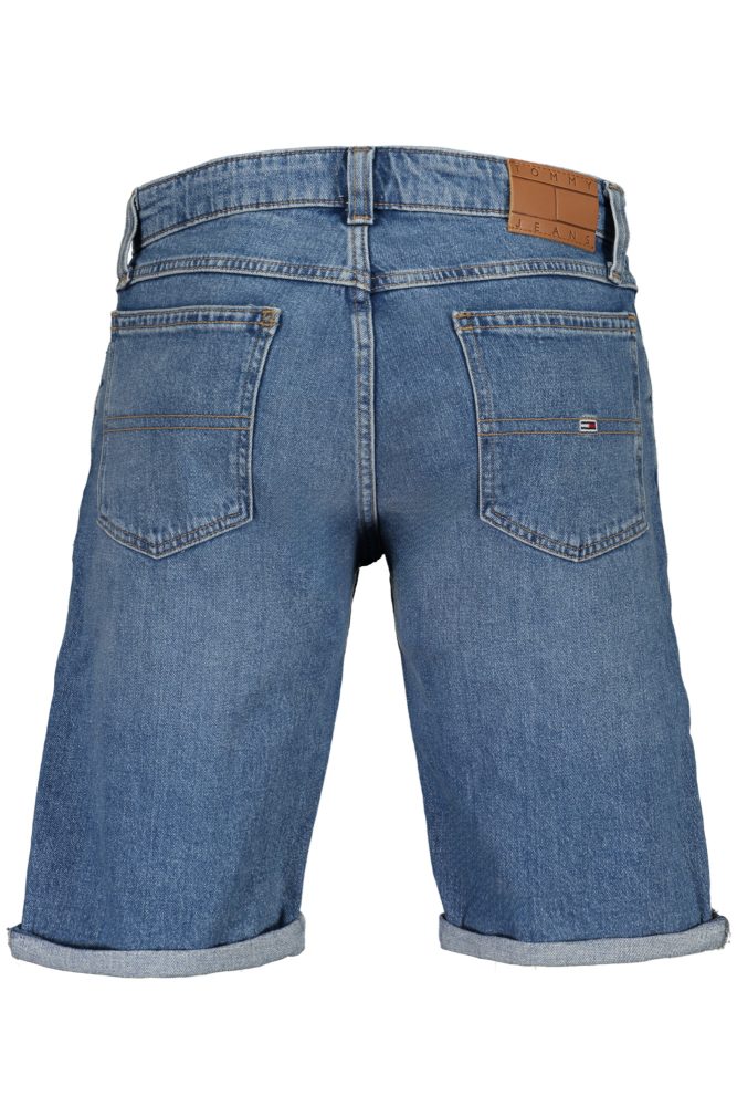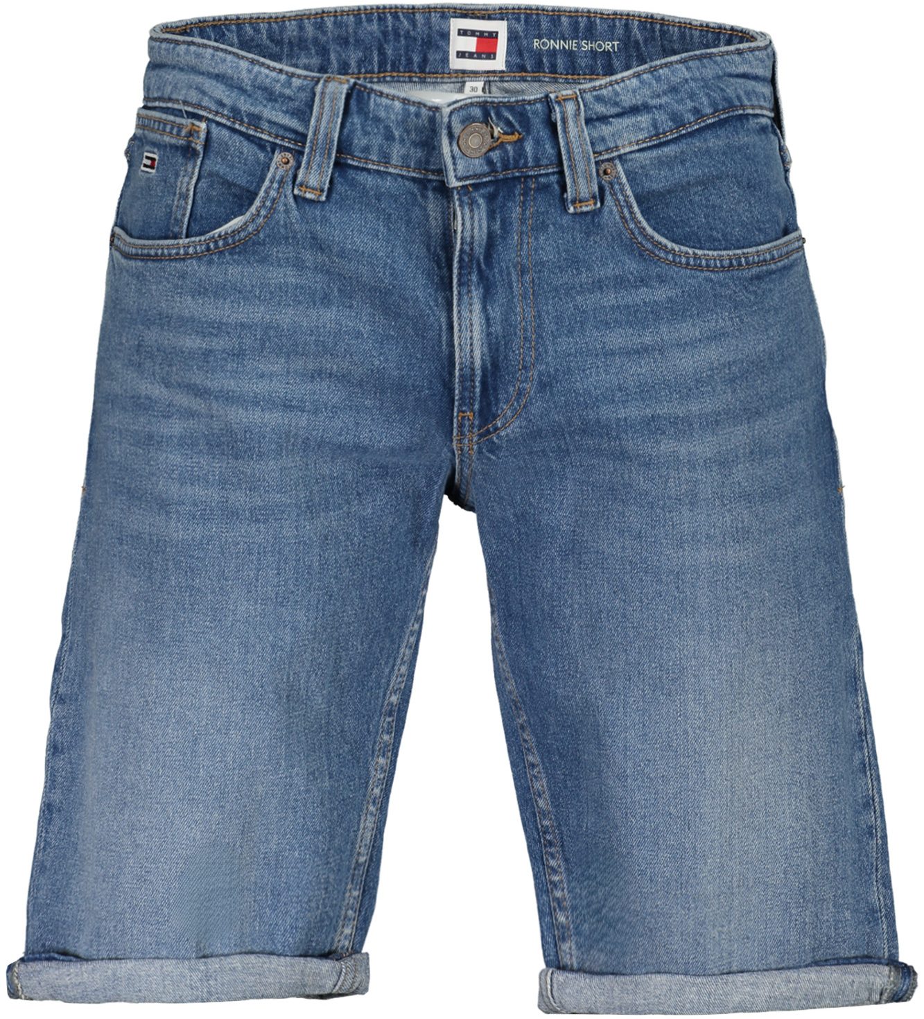 Calções com 5 bolsos, efeito desbotado, zíper e botão, logótipo bordado.