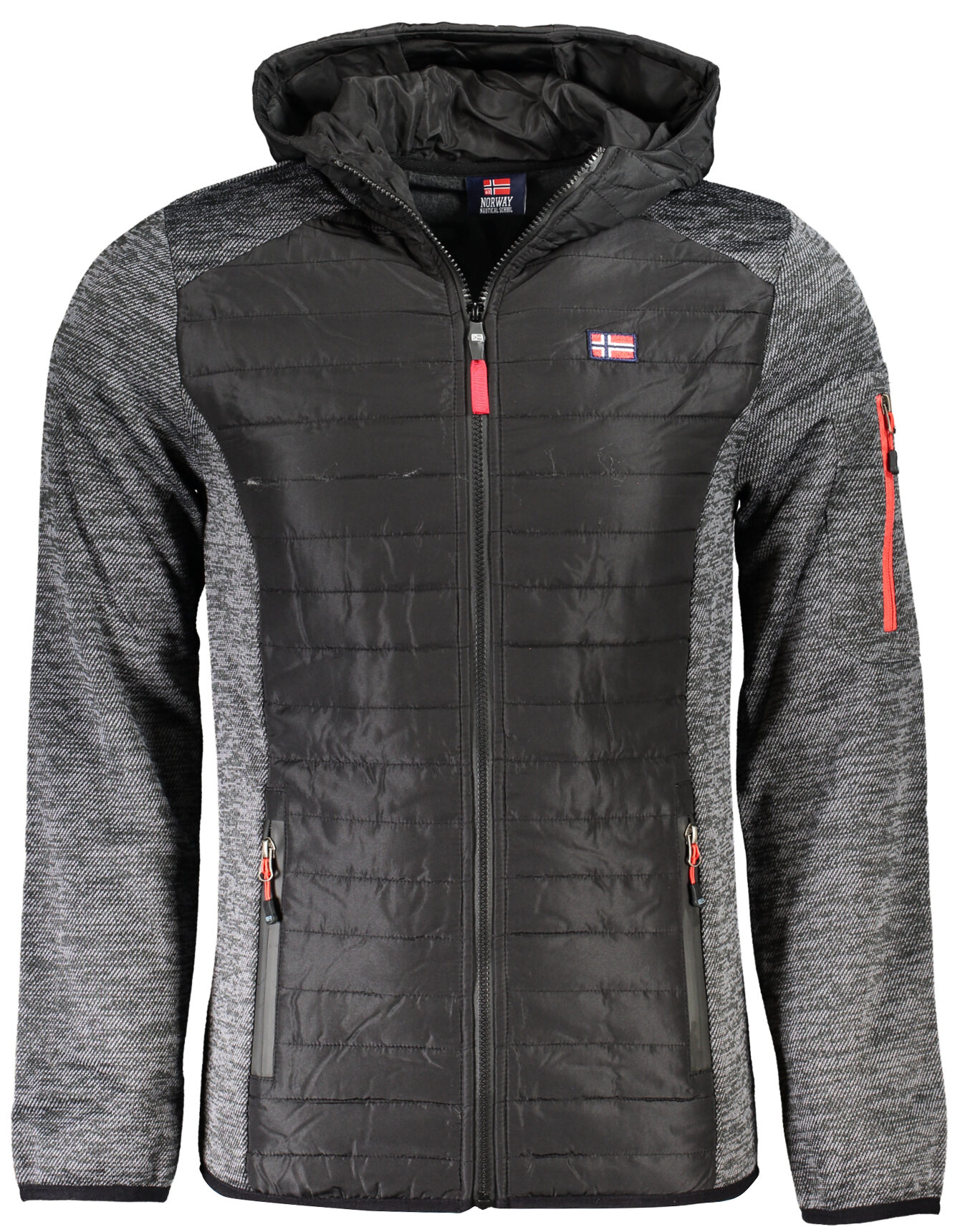 Casaco desportivo de manga comprida com capuz, 2 bolsos exteriores, 2 bolsos interiores, 1 bolso no braço esquerdo, detalhes em contraste, fecho de correr, logótipo.