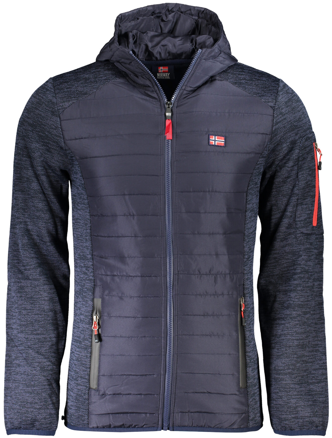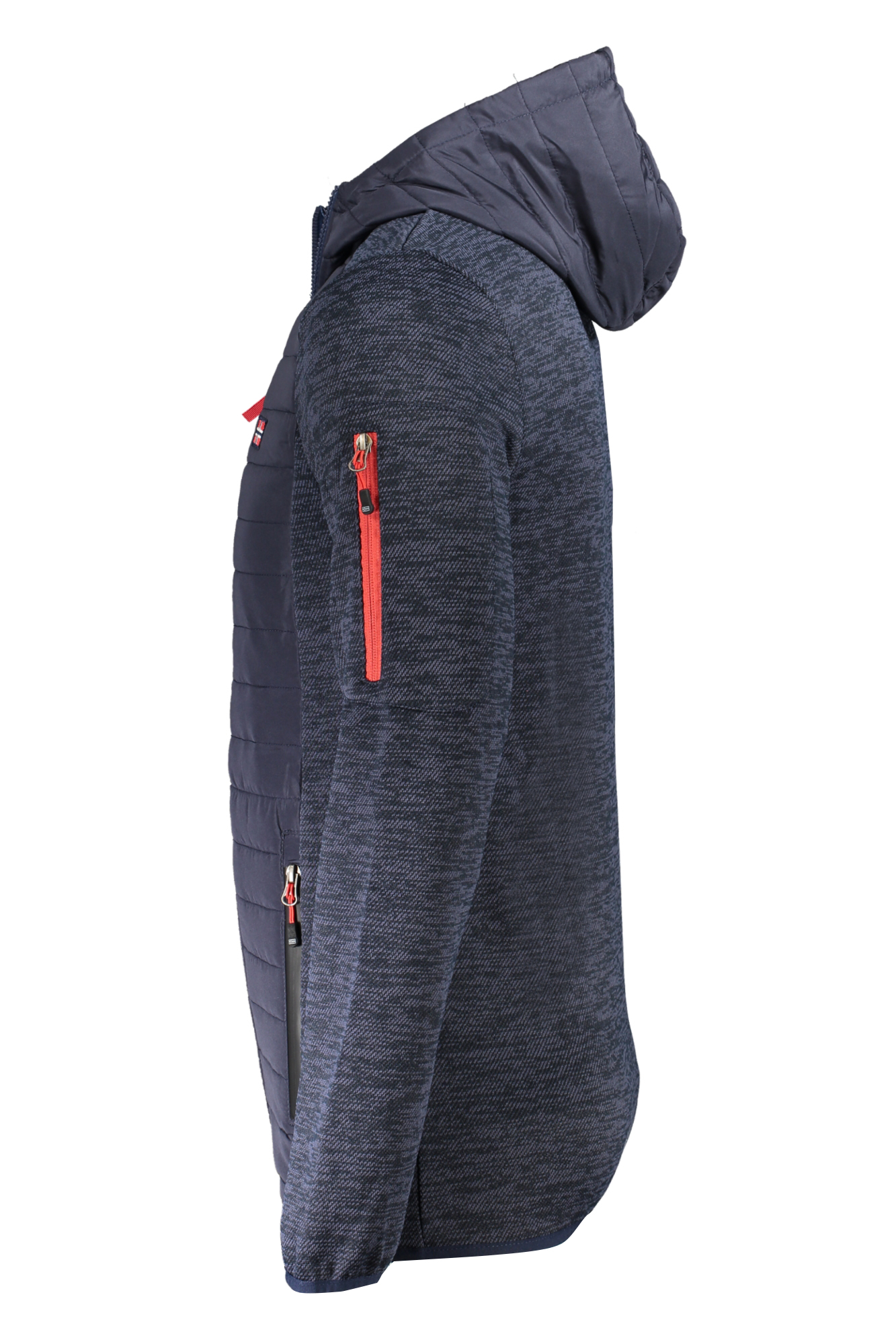 Casaco desportivo de manga comprida com capuz, 2 bolsos exteriores, 2 bolsos interiores, 1 bolso no braço esquerdo, detalhes em contraste, fecho de correr, logótipo.