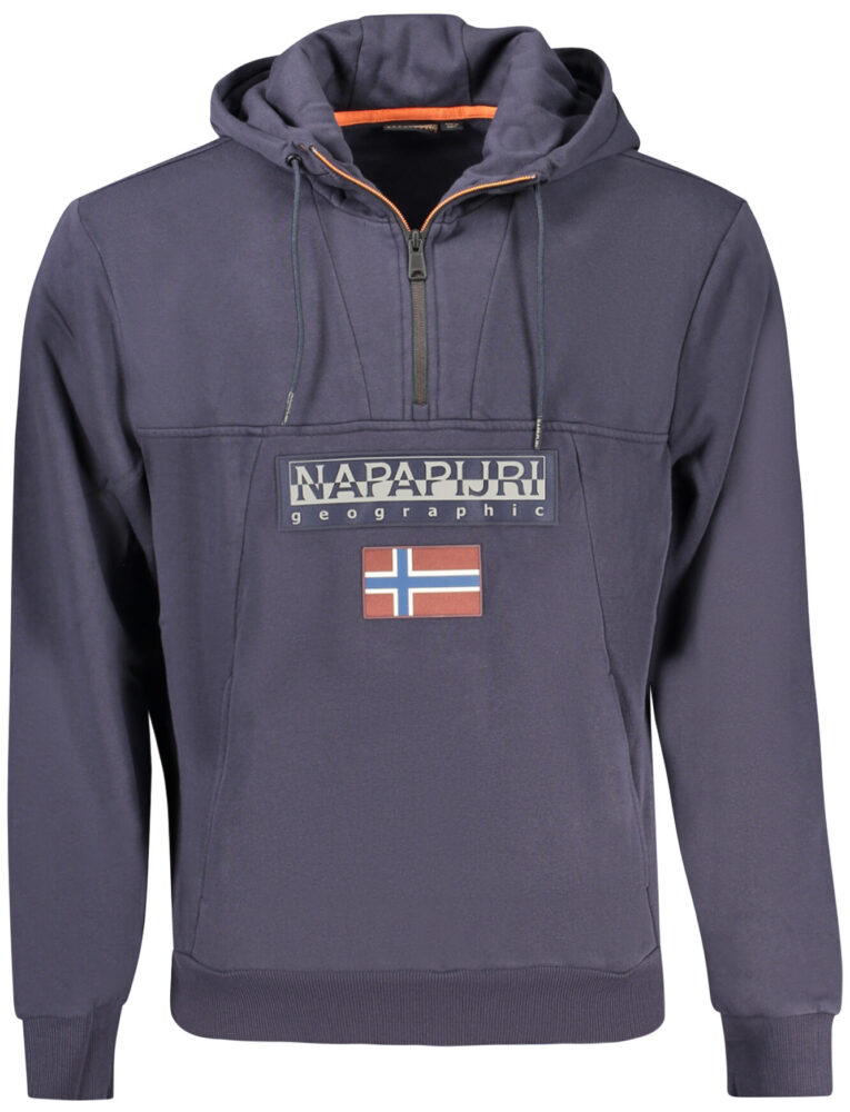 Sweatshirt com capuz de manga comprida, corte descontraído, 2 bolsos centrais, 1/2 fecho de correr, logótipo, 70% algodão orgânico