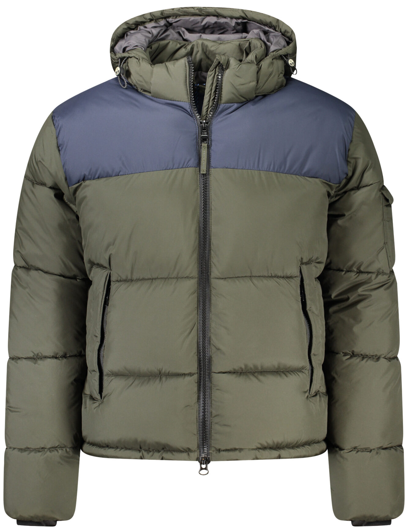 Casaco com 2 divisórias interiores, 1 divisória exterior lateral, pormenores em contraste, fecho de correr, logótipo