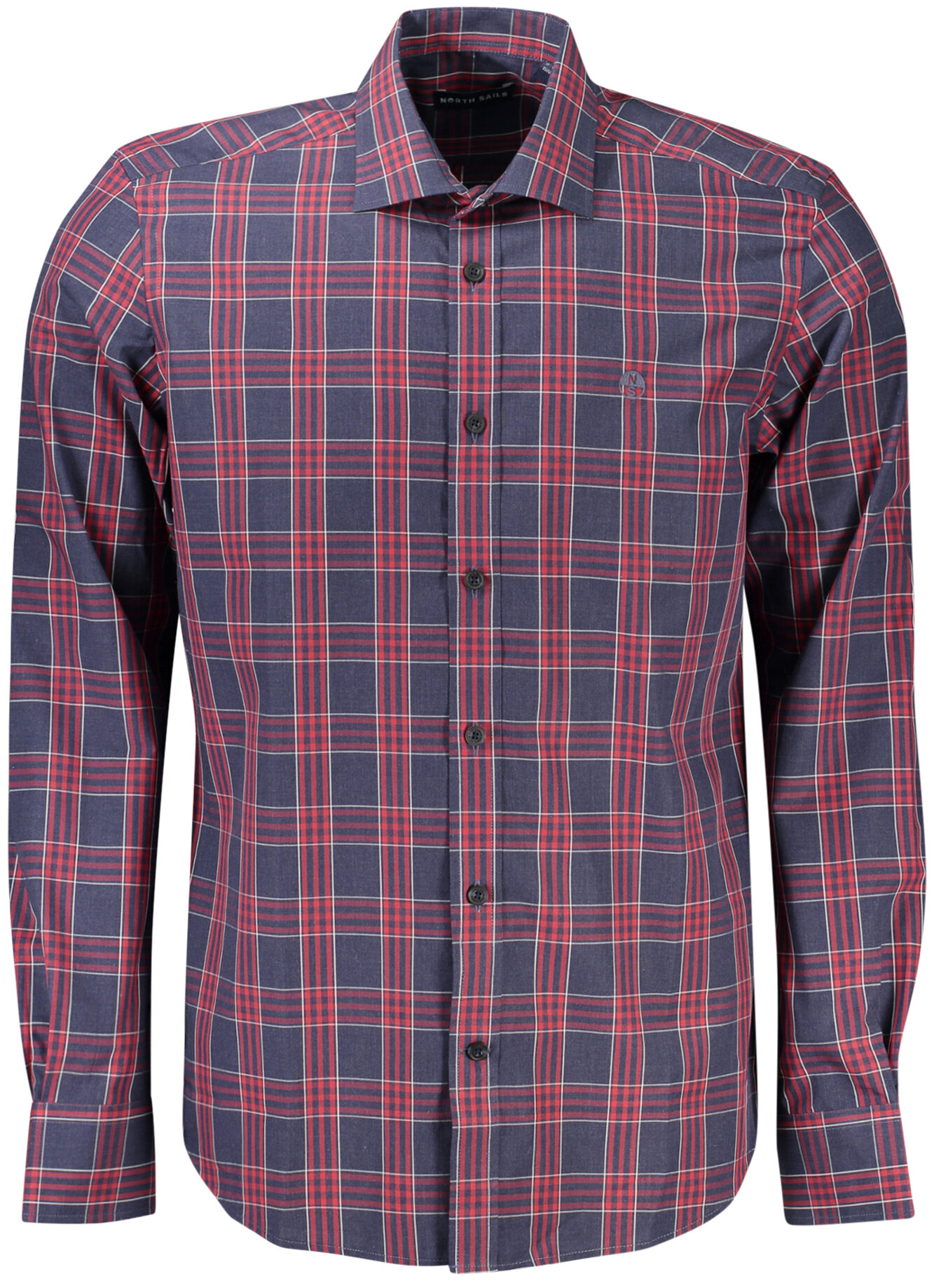 Camisa de manga comprida, corte regular, xadrez, gola aberta, punhos com 1 botão, bordado, logótipo