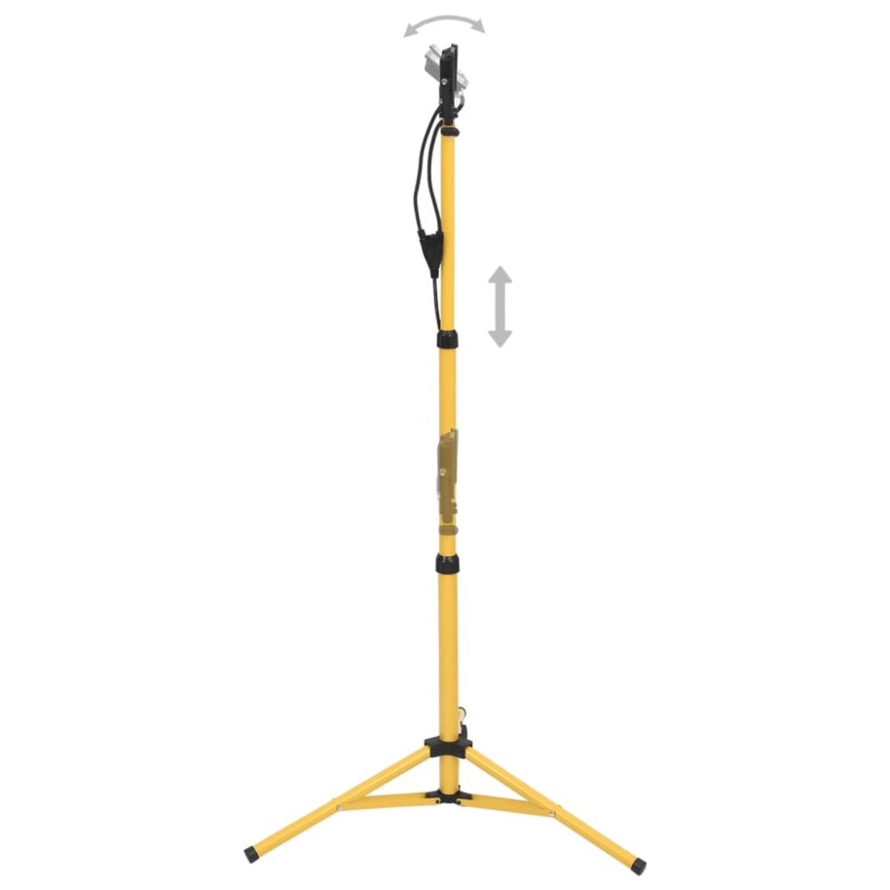 Este holofote LED com tripé é a luz de trabalho ideal para qualquer local onde seja necessária uma iluminação brilhante. É adequado para entusiastas de bricolage em casa, bem como para atividades artesanais, tais como num local de construção ou oficina. Graças à sua estrutura em alumínio e proteção de vidro, esta iluminação de trabalho apresenta um bom desempenho em termos de dissipação de calor e é leve. Com 2800 lm de fluxo luminoso e um ângulo de feixe de 120º, assegura a iluminação perfeita. O projetor emite uma temperatura de cor de 6000 K para garantir soluções ideais de iluminação pela sua casa. A iluminação de trabalho é suportada por um tripé de aço, que complementa a sua robustez e estabilidade. A altura é ajustável de acordo com a sua preferência. Graças ao cabo de alimentação de 3 m firmemente ligado com ficha, a iluminação pode ser perfeitamente posicionada na divisão. Este aparelho não se destina a ser utilizado por pessoas (incluindo crianças) com capacidades físicas, sensoriais ou mentais reduzidas, ou com falta de experiência e conhecimentos, exceto se tiverem recebido supervisão ou instruções relativas à utilização do aparelho por uma pessoa responsável pela sua segurança. Este produto não é um brinquedo. Não permita que as crianças brinquem com o aparelho.