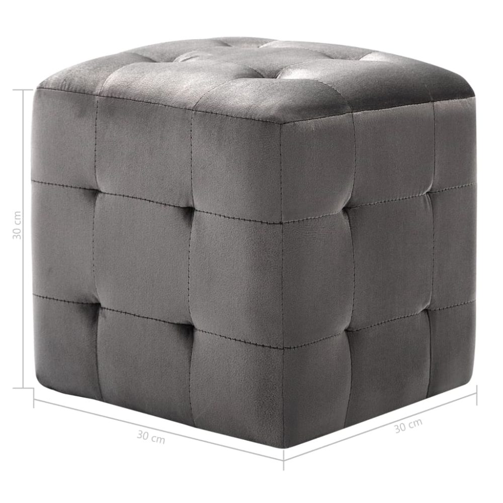 Pufe 2 pcs 30x30x30 cm veludo cinzento - PORTES GRÁTIS
