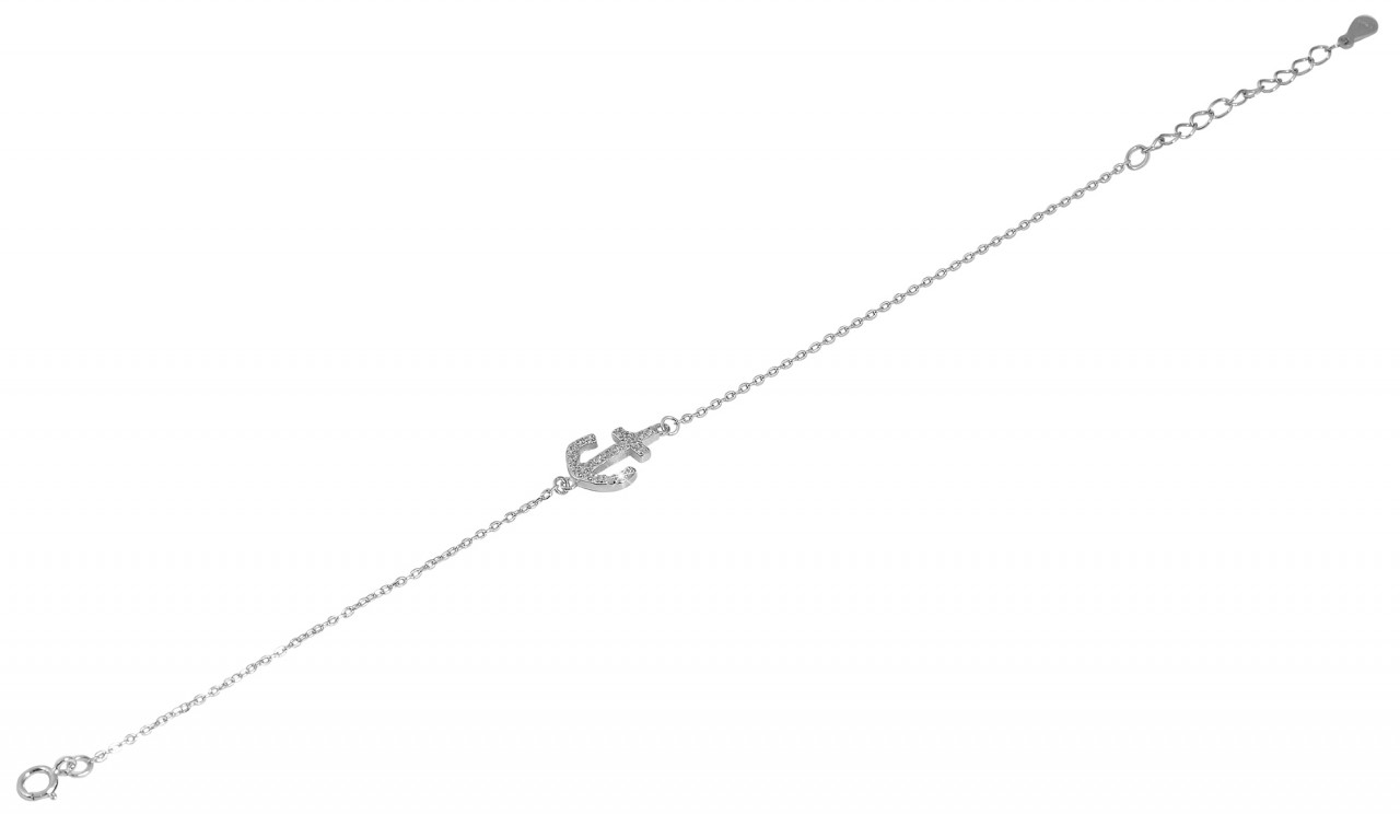 A pulseira marítima com pingente de âncora é feita em prata de lei 925 e adicionalmente banhada a ródio. O pingente em forma de âncora é decorado com 20 pedras brilhantes de zircônia. Tem comprimento de 13 mm, largura de 10 mm e espessura de 2 mm. A pulseira tem 17 cm de comprimento e pode ser ampliada em 3 cm graças a uma corrente extensora. A pulseira atemporal é uma joia encantadora que é o complemento perfeito para qualquer caixa de joias.