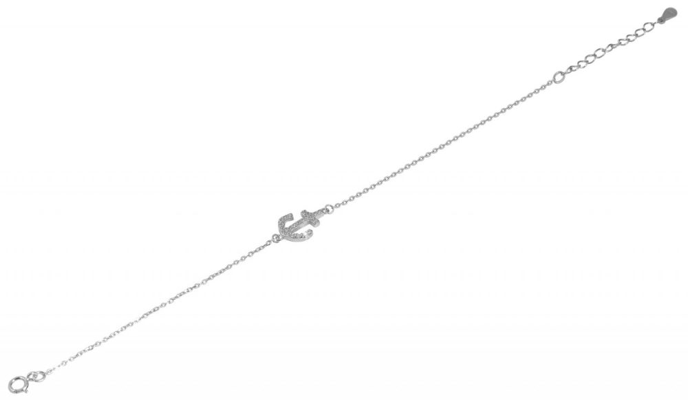 A pulseira marítima com pingente de âncora é feita em prata de lei 925 e adicionalmente banhada a ródio. O pingente em forma de âncora é decorado com 20 pedras brilhantes de zircônia. Tem comprimento de 13 mm, largura de 10 mm e espessura de 2 mm. A pulseira tem 17 cm de comprimento e pode ser ampliada em 3 cm graças a uma corrente extensora. A pulseira atemporal é uma joia encantadora que é o complemento perfeito para qualquer caixa de joias.