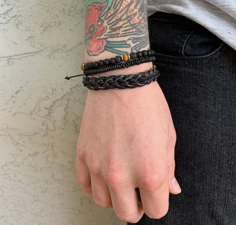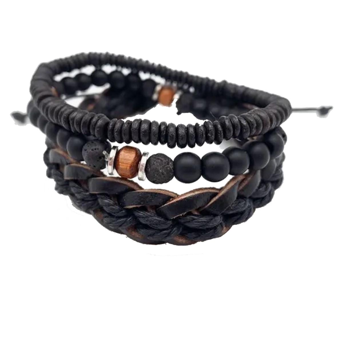 - Contas em preto e madeira