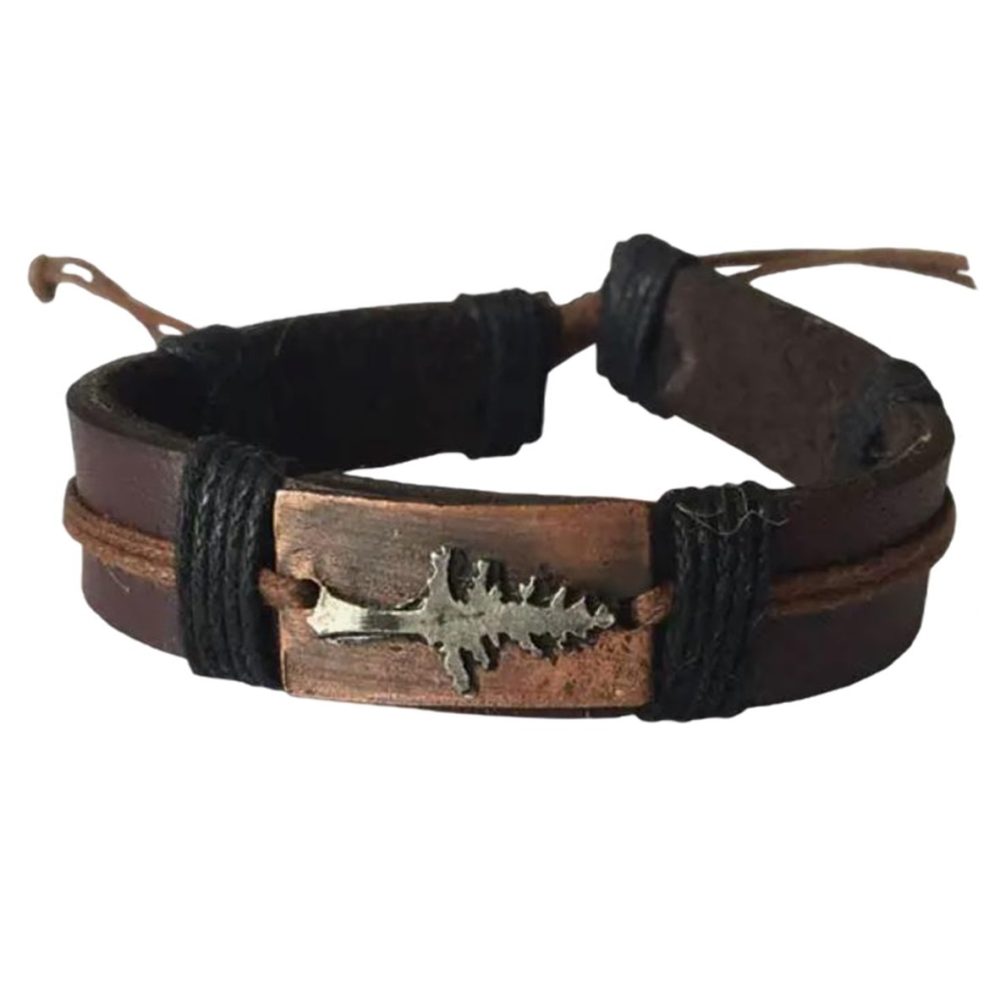 - Feito com materiais como couro genuíno, juta, madeira e ferro.