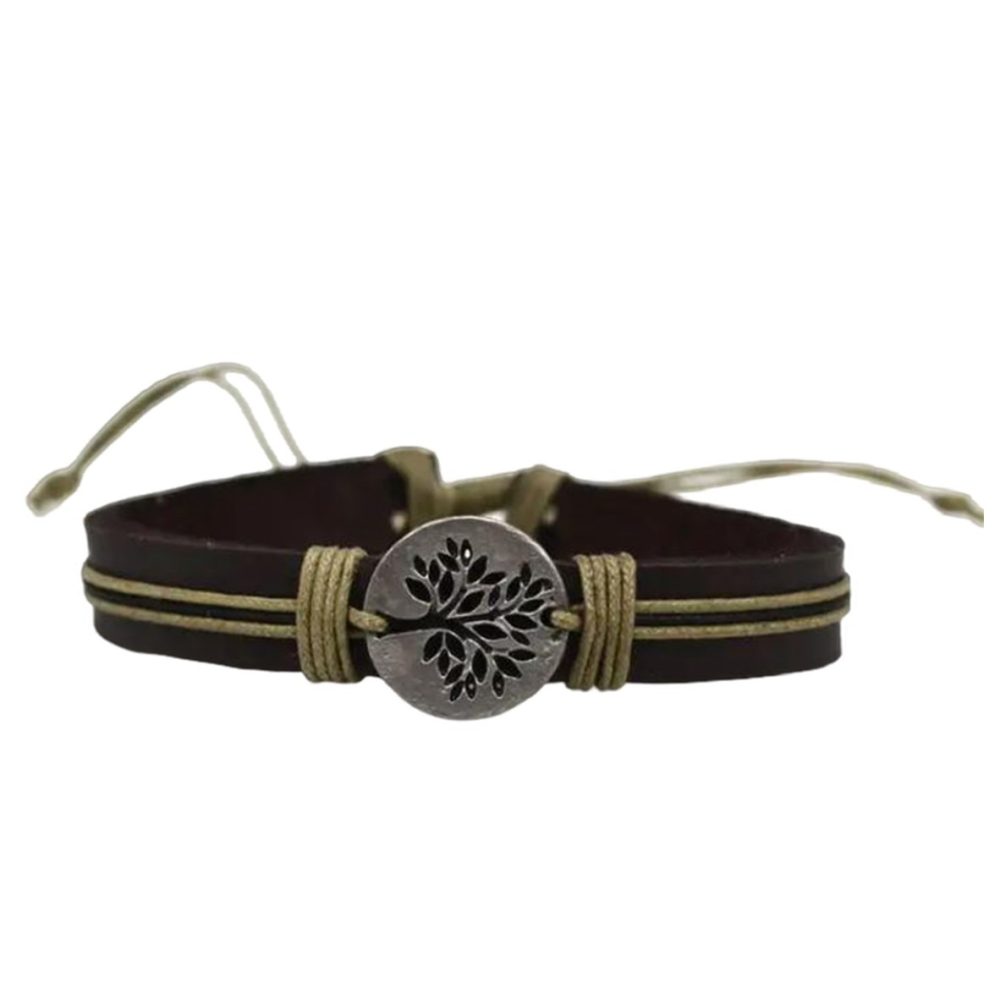 Pulseira de Couro Anju Pull Tie Árvore Vida B1285L7 - Produzida Artesanalmente na Índia