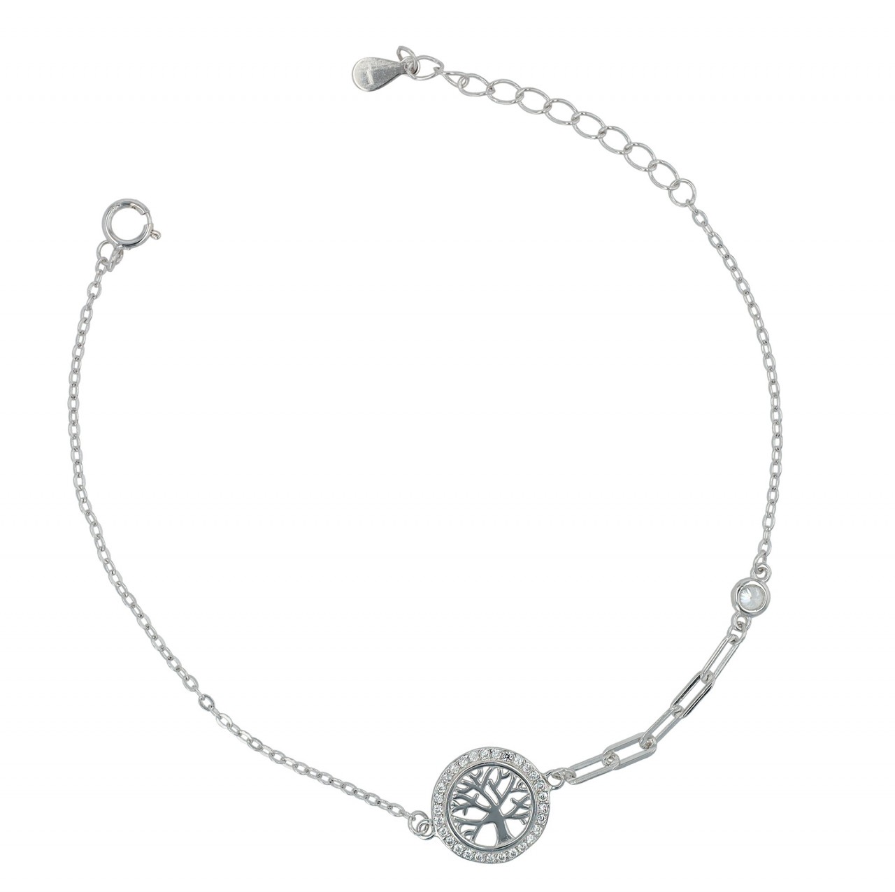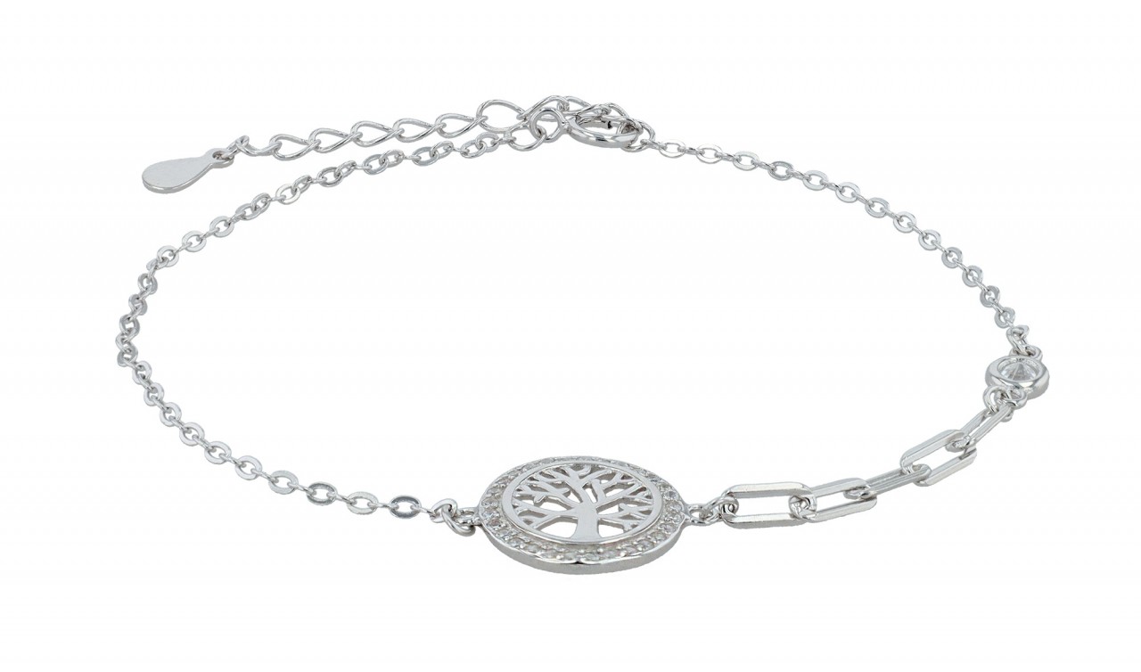 A pulseira árvore da vida “Ashby” é feita de prata esterlina 925 e coberta com uma camada de ródio, que não só realça o brilho, mas também protege contra manchas. Isso garante que a joia mantenha sua aparência por um longo período de tempo. Esta pulseira combina dois tipos diferentes de correntes, que fluem harmoniosamente para formar um pingente redondo de árvore da vida de 11 mm. O pingente da árvore da vida é decorado com zircónias brilhantes ao redor. A pulseira tem 17 cm de comprimento com uma corrente de extensão adicional de 3 cm, permitindo um ajuste flexível a diferentes tamanhos de pulso e garantindo um ajuste confortável. Um fecho lagosta garante que ele permaneça seguro no seu pulso, tornando o uso prático e sem preocupações.