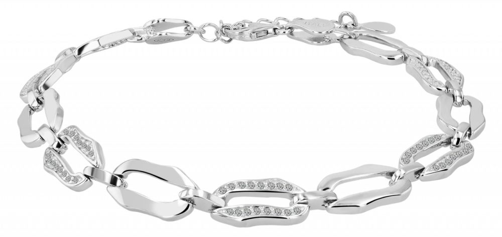 A pulseira “Benilde” apresenta elementos curvos e interligados, espaçados uniformemente com zircônias brilhantes. Com comprimento de 18 + 3 cm, largura de 7 mm e espessura de 1,5 mm, esta joia oferece um equilíbrio perfeito entre elegância e substância. Feita em prata esterlina 925 de alta qualidade, esta joia especial não é apenas um destaque visual, mas também promete qualidade duradoura. A superfície banhada a ródio realça o brilho radiante e protege contra manchas indesejadas.