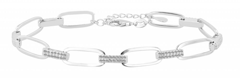Esta joia impressiona pelo seu design sofisticado, composto por elementos angulares que são habilmente conectados entre si por um elemento prateado cravejado de zircônias. A superfície polida confere à pulseira um visual brilhante que combina charme sutil com estilo moderno. O revestimento de ródio de alta qualidade da prata esterlina não apenas aumenta o brilho radiante, mas também protege a pulseira de manchas indesejadas. Com um comprimento de 18 cm, que pode ser prolongado com uma corrente adicional de 3 cm, a pulseira prateada adapta-se perfeitamente ao pulso. O perfil fino de 6,5 mm de largura e 3,5 mm de espessura proporciona uma presença sutil, mas impressionante.
