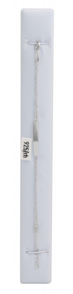 A pulseira no padrão de corrente Figaro com placa de identificação integrada é feita de prata esterlina 925 e adicionalmente refinada com um revestimento de ródio. Este revestimento protege o material de manchas e também garante um brilho radiante. A faixa de identificação é adequada para todos os tipos de gravuras, para que você possa dar um toque personalizado à faixa simples. A pulseira está disponível em diferentes comprimentos e pode ser estendida em 3 cm. A placa de gravação tem 22 mm de comprimento, 4 mm de largura e 1 mm de espessura.