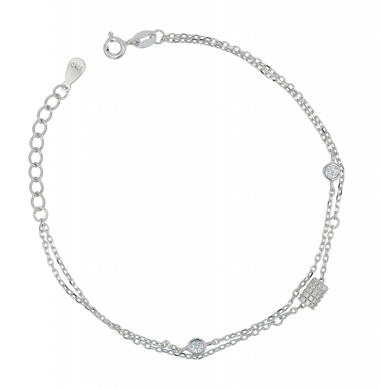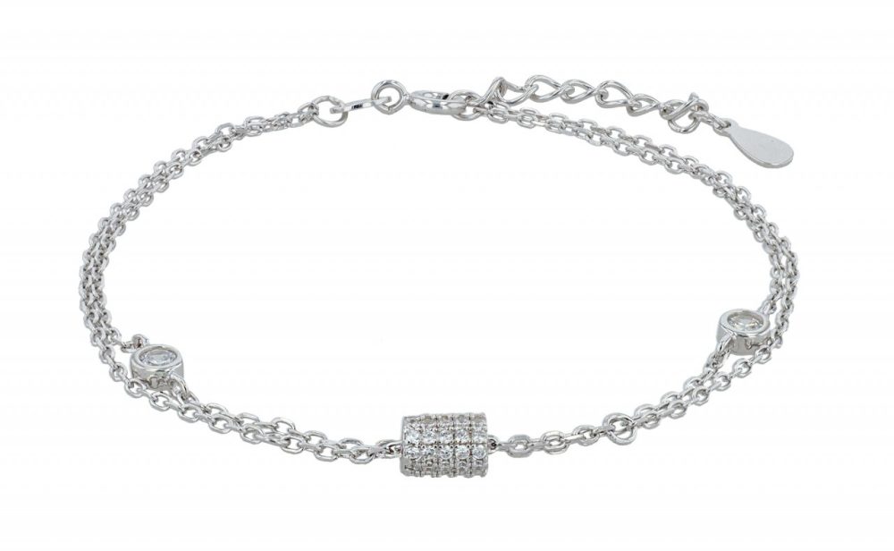 Feita em prata de lei 925 com banho de ródio, nossa pulseira “Valar” é um investimento em qualidade e estilo. Caracteriza-se pela sua corrente de âncora de duas carreiras, o que lhe confere uma estrutura fina. Três elementos diferentes, firmemente integrados ao design, são incrustados com pedras brilhantes de zircónia e detalhes elegantes. Com comprimento de 17cm e corrente extensora de 3cm, a pulseira oferece flexibilidade e conforto. Pode ser facilmente ajustado a diferentes tamanhos de pulso e o fecho lagosta segura a pulseira no pulso e facilita a colocação e a retirada.