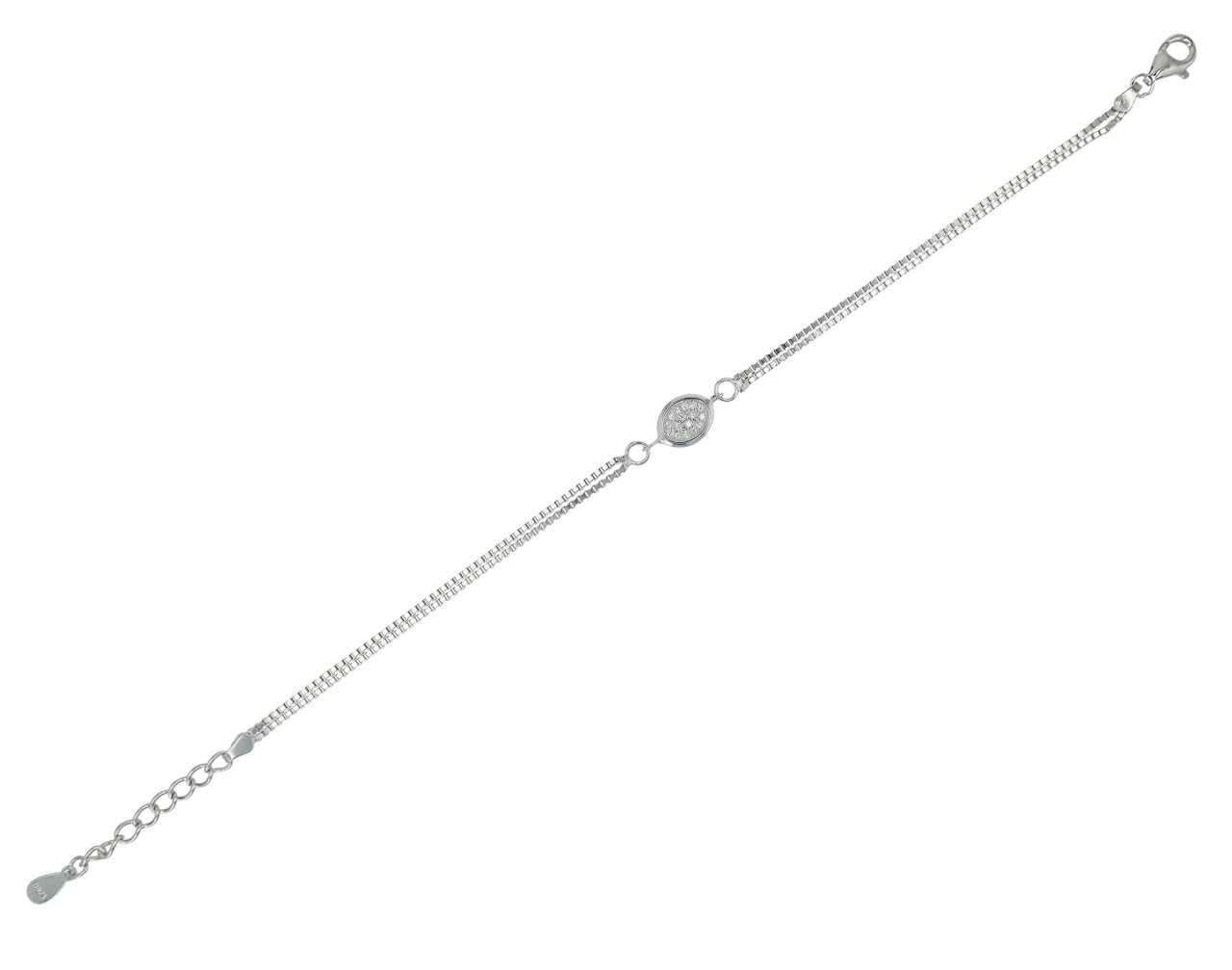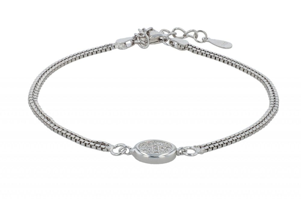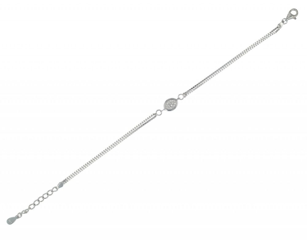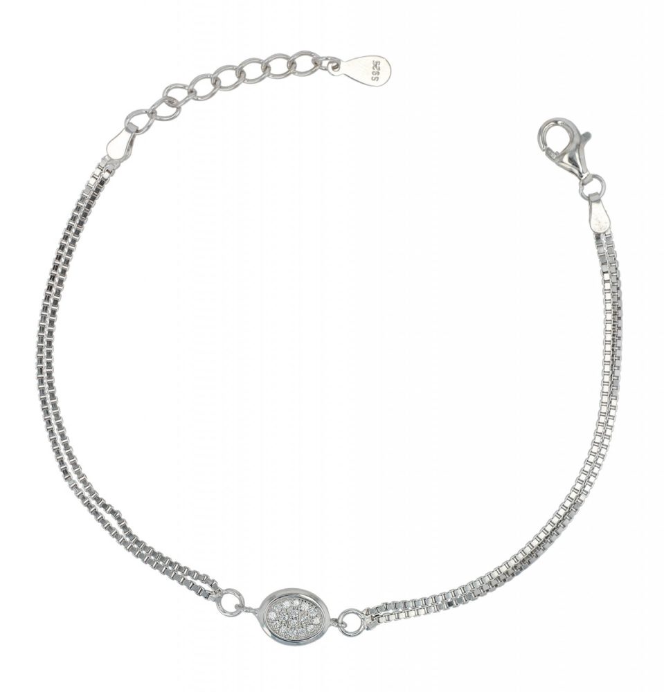 Feita em prata de lei 925 e acabamento em banho de ródio, nossa pulseira “Yara” é um investimento em qualidade e estilo. Possui uma construção de corrente Venezia de duas carreiras, conferindo-lhe uma estrutura robusta mas delicada. O elemento oval com acabamento em zircónia está firmemente integrado ao design e tem um tamanho delicado de 14 x 7 mm. Com comprimento de 17cm e corrente extensora de 3cm, a pulseira oferece flexibilidade e conforto. Pode ser facilmente ajustado a diferentes tamanhos de pulso e o fecho lagosta segura a pulseira no pulso e facilita a colocação e a retirada.