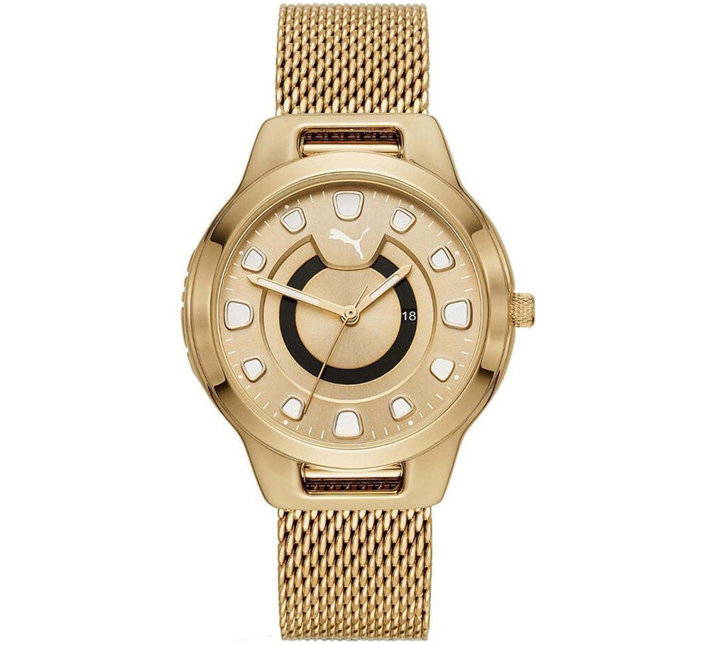 • Caixa em aço inoxidável, revestimento cor de ouro, polida