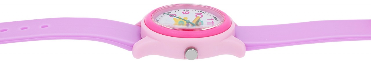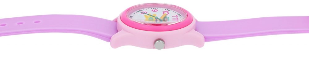 Este relógio infantil feminino com pulseira de silicone e motivos florais impressiona com um movimento de quartzo preciso e de alta qualidade que não só garante precisão, mas também garante confiabilidade duradoura. A impressionante resistência à água de 10 ATM torna este relógio perfeito para crianças aventureiras que adoram mergulhar e brincar. A pulseira de silicone roxa não só proporciona um ajuste confortável, mas também um toque lúdico que faz os pequenos corações baterem mais rápido. A delicada fivela rosa adiciona um toque de elegância divertida e garante um ajuste seguro. A caixa de plástico rosa, combinada com uma luneta rosa, dá um toque de moda e faz…
