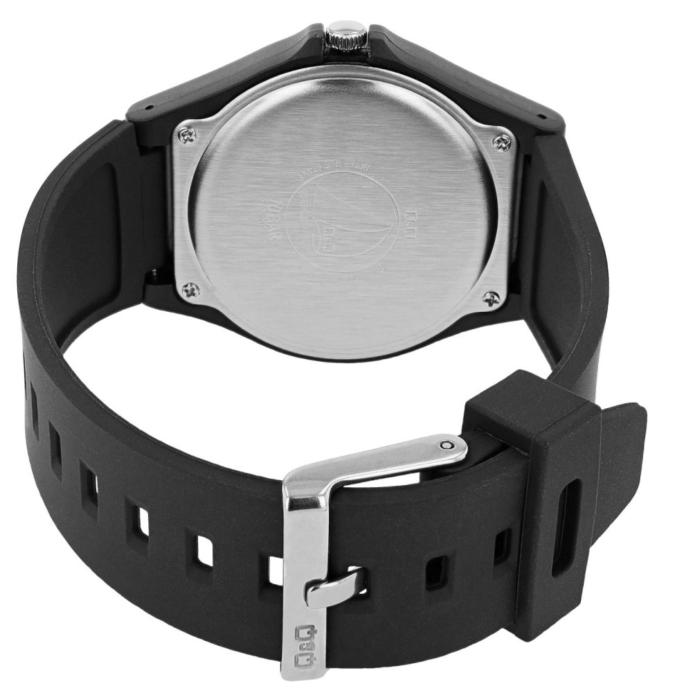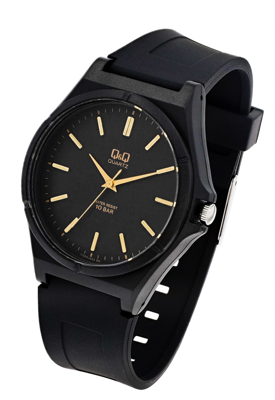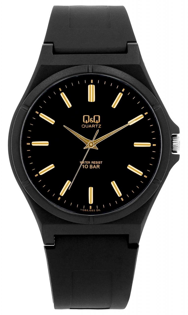 O relógio masculino Q&Q com pulseira de silicone em nosso atacadista de relógios. Um movimento de quartzo de alta qualidade funciona dentro do relógio, garantindo extrema precisão e confiabilidade. O mostrador preto do relógio impressiona com um índice de linhas douradas, que não só garante clareza, mas também elegância atemporal. A simplicidade do design torna este relógio um companheiro versátil e garante uma leitura rápida e fácil das horas. A caixa do relógio é feita de plástico durável, enquanto a parte traseira da caixa em aço inoxidável proporciona estabilidade adicional. Com um impressionante diâmetro de caixa de 43 mm e uma altura de 12 mm.