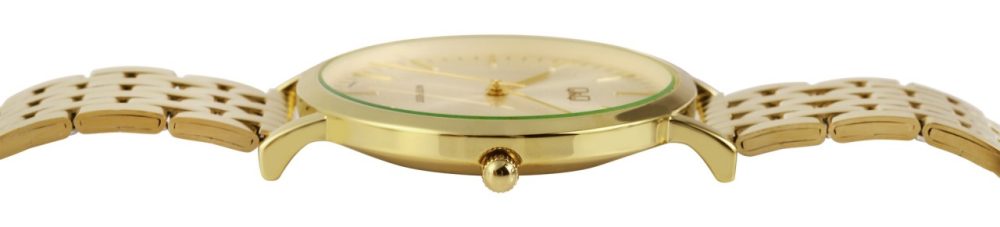 O relógio de pulso analógico masculino de 3 ponteiros da marca Q&Q possui um movimento de quartzo de alta qualidade. A pulseira em aço inoxidável dourado tem 18 mm de largura na alça e pode ser aberta e fechada com um fecho dobrável em aço inoxidável dourado. O comprimento total do relógio é de 22,5 cm. A caixa redonda de metal com vidro mineral tem um diâmetro de 40 mm e uma altura de 7,5 mm. O fundo da caixa é feito de aço inoxidável e o relógio tem resistência à água de 3 bar. O mostrador é claramente projetado. Os ponteiros e índices também são dourados e completam harmoniosamente a aparência geral do relógio masculino.…