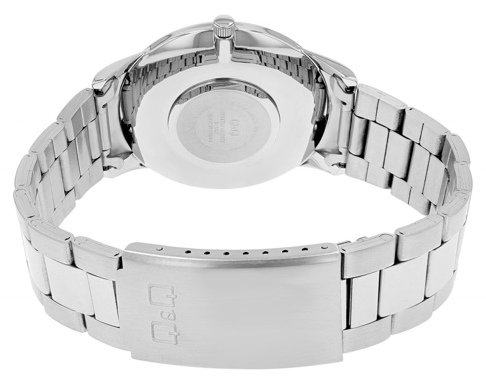 O relógio masculino Q&Q com pulseira de aço inoxidável com aspecto prateado é um símbolo de estilo e classe que se adapta a qualquer ocasião. A caixa de metal prateado com diâmetro de 40 mm chama a atenção. Este relógio exala classe e sofisticação atemporal e é o epítome da qualidade. A caixa e a pulseira em aço inoxidável harmonizam-se perfeitamente e conferem ao relógio uma aparência marcante e elegante. O mostrador fascina pelo seu design simples e atemporal.
