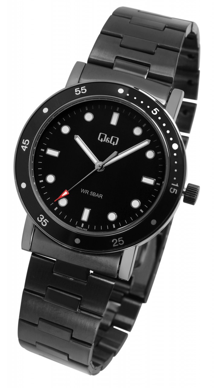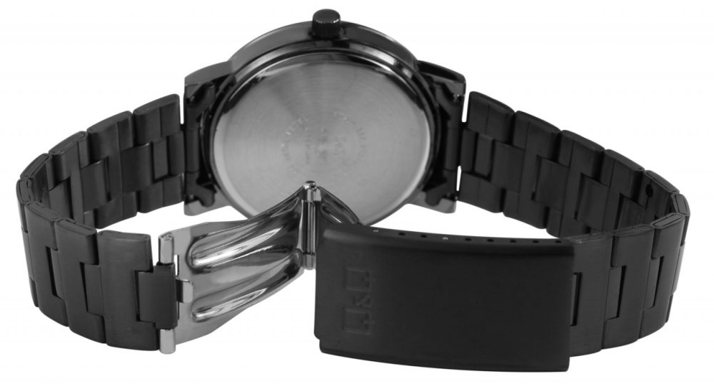 O relógio de pulso analógico masculino de 3 ponteiros da marca Q&Q possui um movimento de quartzo de alta qualidade. A pulseira em aço inoxidável preto tem 20 mm de largura nas alças e pode ser aberta e fechada com um fecho de gancho em aço inoxidável. O comprimento total do relógio é de 22 cm. A caixa de metal preto com vidro mineral tem um diâmetro de 38 mm e uma altura de 9 mm. O fundo da caixa é feito de aço inoxidável e o relógio tem resistência à água de 5 bar. Graças aos ponteiros e índices revestidos com Superluminova, a hora também pode ser lida no escuro. Resumindo, este relógio desportivo é um acessório de sucesso que pode ser usado em inúmeras ocasiões.