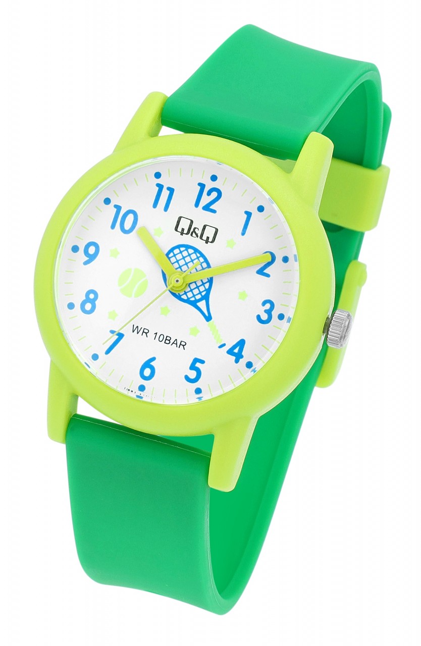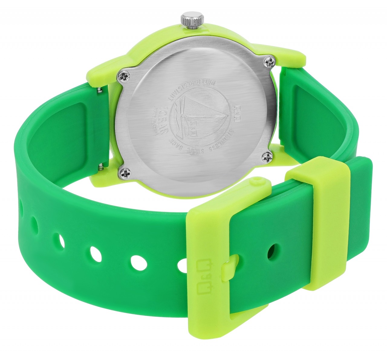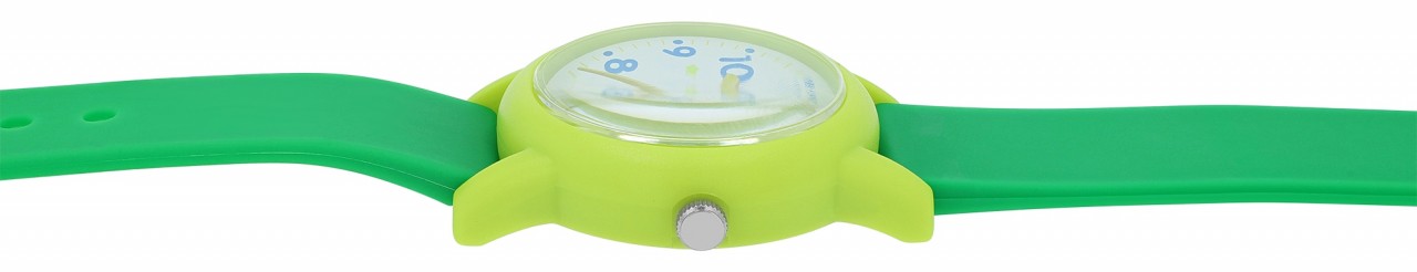 Este relógio analógico de 3 ponteiros não só vai indicar as horas, mas também despertar a paixão pelo ténis. Combina estilo, funcionalidade e durabilidade e com certeza conquistará o coração dos pequenos fãs de tênis. A caixa verde clara do relógio é feita de plástico robusto, enquanto a tampa da caixa é feita de aço inoxidável, o que fortalece ainda mais a caixa. Isto não só garante uma longa vida útil, mas também uma elevada resistência a choques e quedas – ideal para jogos intensivos no campo de ténis. O comprimento total é de 22,5 cm, o diâmetro da caixa é de 32 mm e a altura da caixa é de 10 mm. Com uma largura de pulseira de 16 mm.