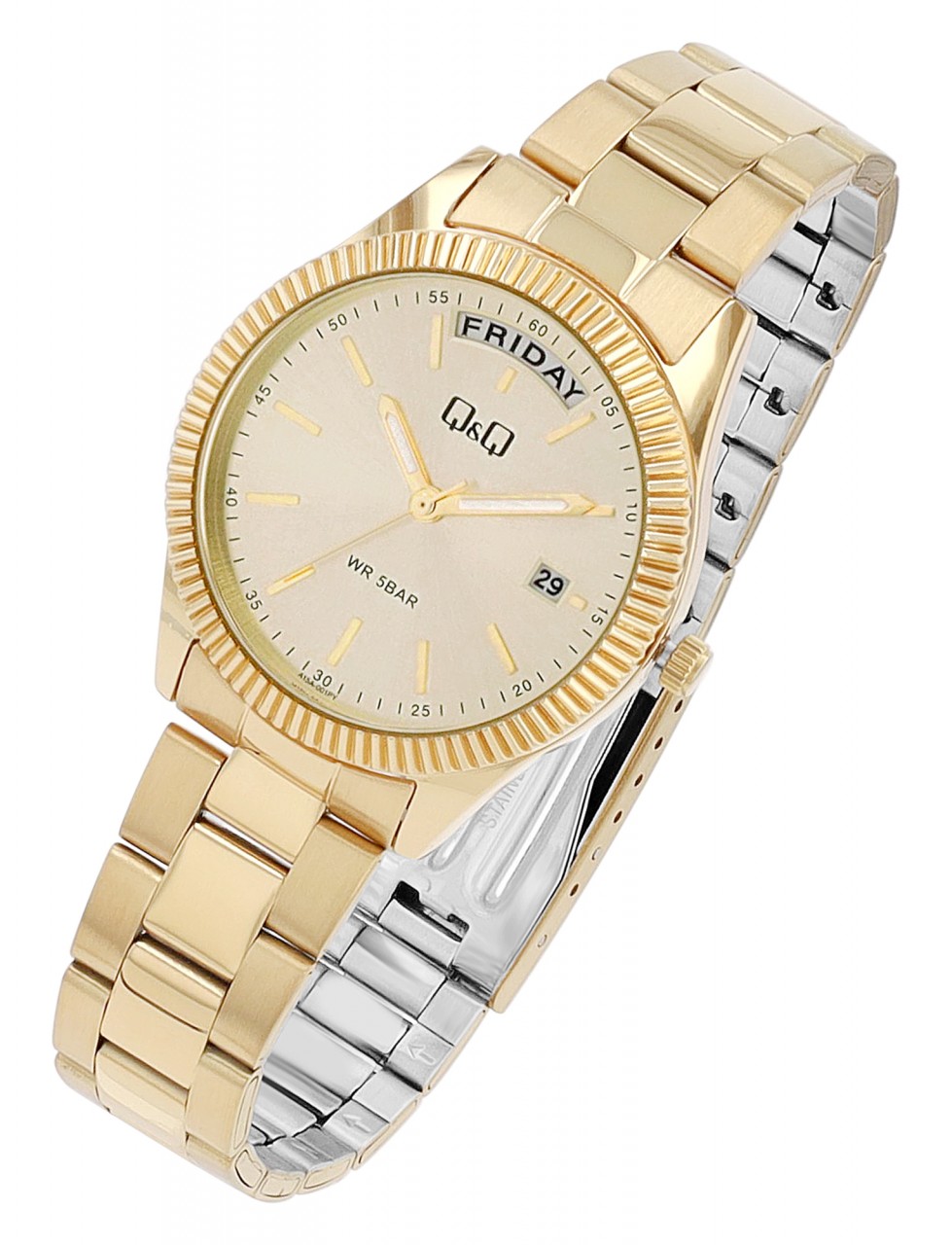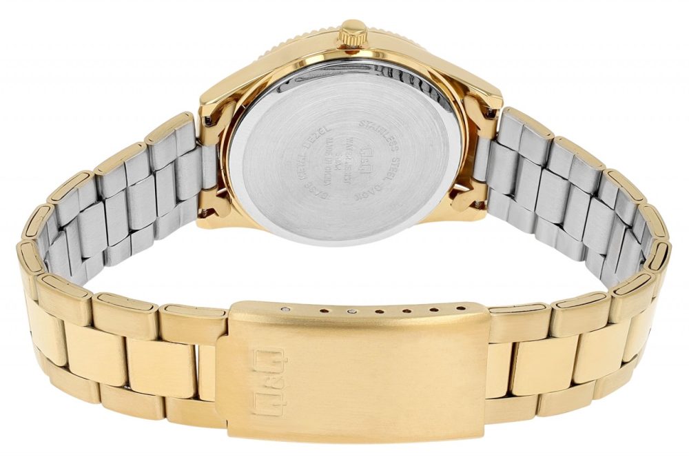Relógio feminino Q&Q com pulseira de aço inoxidável, dourado .