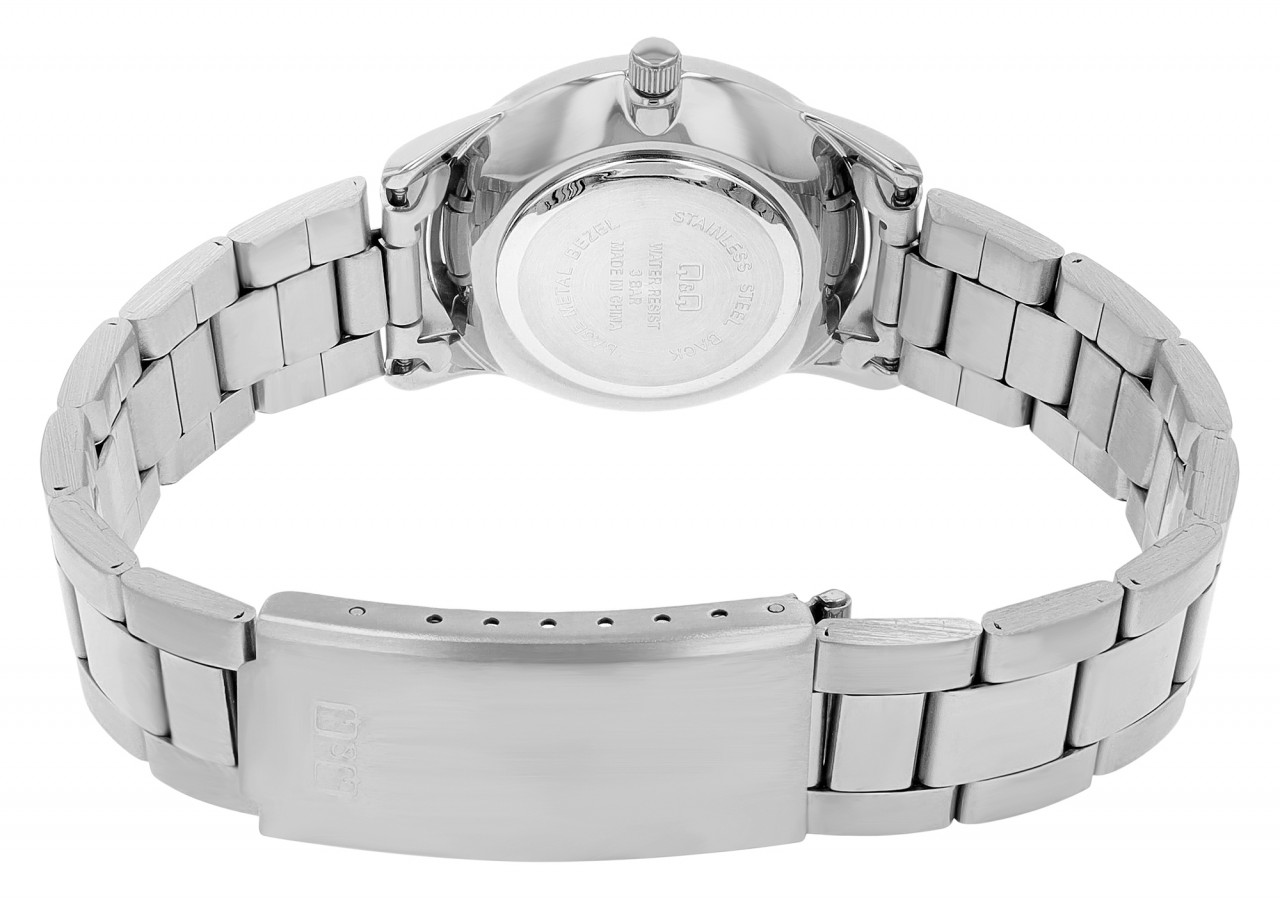 Deixe-se surpreender pela qualidade e charme deste relógio feminino Q&Q com pulseira em aço inoxidável de aspecto clássico! A pulseira de aço inoxidável em tom prateado não é apenas elegante, mas também extremamente durável. A capacidade de encurtar a pulseira significa que este relógio pode ser perfeitamente adaptado a qualquer pulso. A caixa metálica confere ao relógio uma estrutura robusta, enquanto o vidro mineral protege o mostrador sem comprometer a clareza.