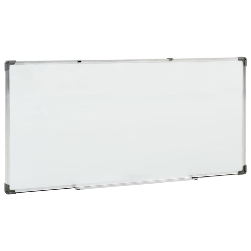 Este quadro magnético de parede é uma solução ideal para criar um local central em sua casa ou escritório onde possa escrever notas, rabiscar ou expor fotos. O quadro branco possui uma superfície de aço esmaltada que lhe permite escrever e limpar com facilidade, utilizando o marcador e o apagador incluídos. A estrutura de alumínio e os protetores de cantos tornam-no robusto e durável. Pode pendurar o artigo com os ímanes fornecidos. Estão incluídos ganchos e parafusos para facilitar a montagem na parede.