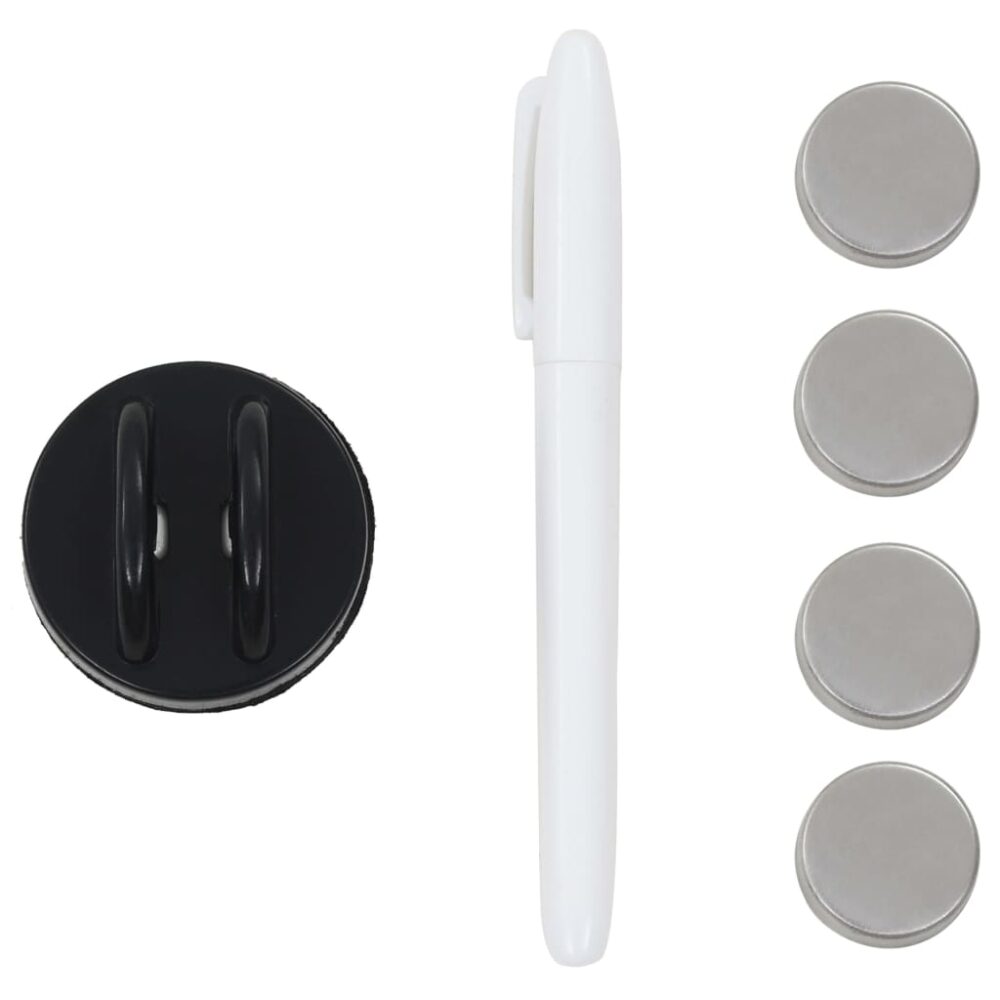 O quadro magnético em vidro, apagável a seco, oferece todos os benefícios de um quadro tradicional de uma forma mais moderna. O quadro possui um vidro temperado de segurança, que não se mancha, risca ou deforma facilmente. Pode segurar papéis ou notas no quadro com o íman incluído. Também pode escrever no quadro magnético com a caneta branca apagável a seco e é fácil de limpar com o apagador incluído. Os materiais necessários para a montagem na parede estão incluídos, o que facilita a fixação do quadro a qualquer parede da sua casa, escritório ou escola. O quadro de escrita também é fácil de montar.