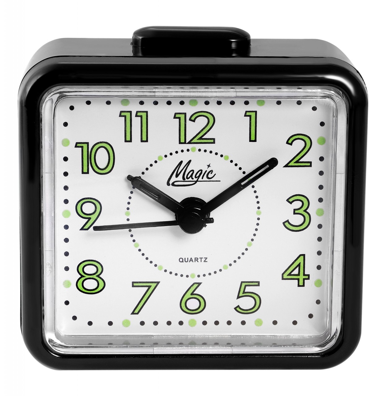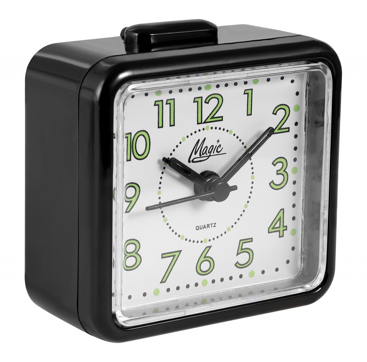 Sem sinos e assobios desnecessários, este despertador oferece exatamente o que você precisa em qualquer lugar ou na vida cotidiana – confiabilidade e fácil manuseio em um formato compacto (6,5 x 7 x 3,5 cm). Este despertador simples de três ponteiros impressiona pela sua simplicidade. O mostrador com algarismos lumina árabes de fácil leitura garante que a hora seja fácil de ler, mesmo em condições de pouca iluminação. A prática prateleira superior permite desligar o alarme de forma rápida e fácil ao acordar de manhã. O despertador é alimentado por uma bateria AA (não incluída).