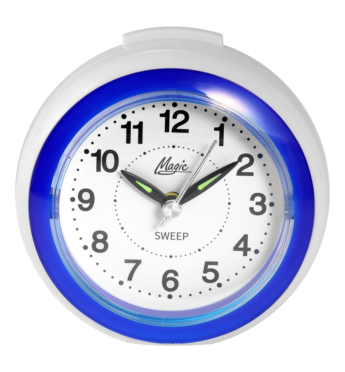 O despertador de quartzo da Magic impressiona pelo seu design redondo e atemporal. Com as suas dimensões compactas de 9 x 9 x 4,7 cm, este despertador é o acessório perfeito para a mesa de cabeceira. O som silencioso do despertador garante uma noite de sono tranquila. A função de luz integrada facilita a leitura da hora, mesmo no escuro. A prateleira superior oferece uma maneira conveniente de desativar o alarme de forma rápida e fácil. Os três ponteiros claramente visíveis e o mostrador de fácil leitura com algarismos arábicos permitem que você veja as horas rapidamente. No geral, este despertador é prático e fácil de usar.