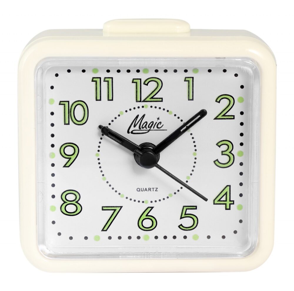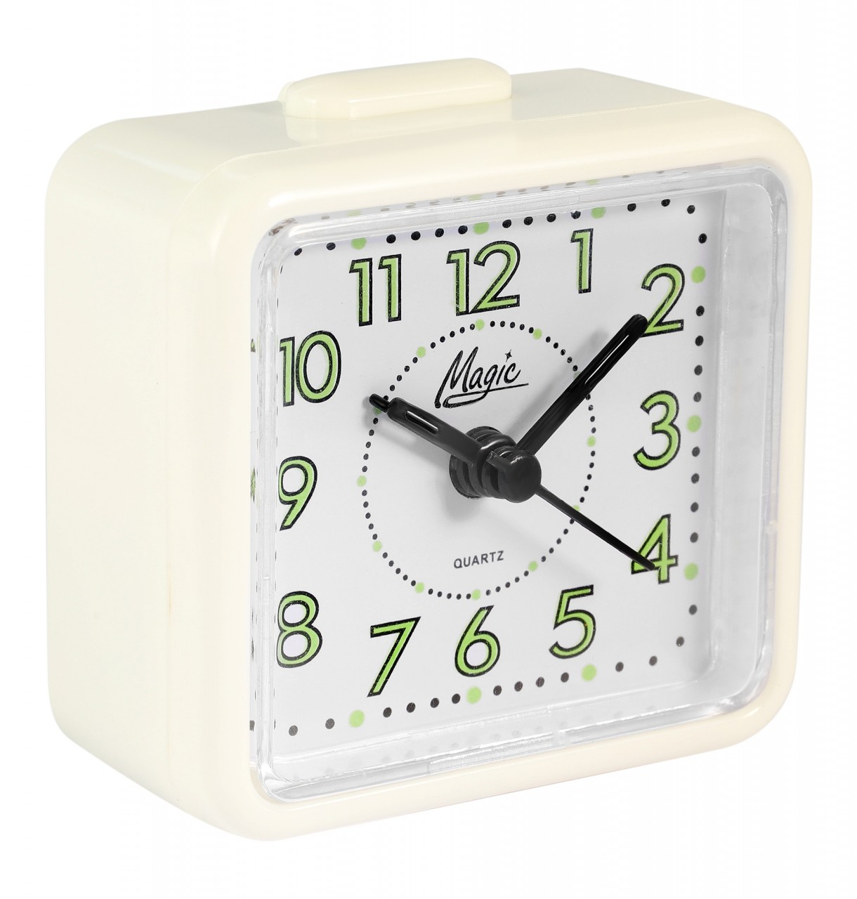 Sem sinos e assobios desnecessários, este despertador oferece exatamente o que você precisa em qualquer lugar ou na vida cotidiana – confiabilidade e fácil manuseio em um formato compacto (6,5 x 7 x 3,5 cm). Este despertador simples de três ponteiros impressiona pela sua simplicidade. O mostrador com algarismos lumina árabes de fácil leitura garante que a hora seja fácil de ler, mesmo em condições de pouca iluminação. A prática prateleira superior permite desligar o alarme de forma rápida e fácil ao acordar de manhã. O despertador é alimentado por uma bateria AA (não incluída).