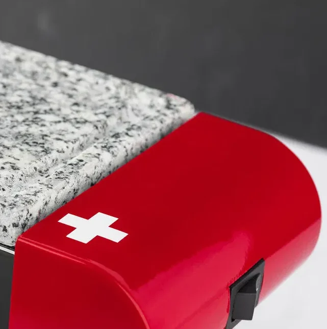 - Conta com acabamento de cores vermelha, preta e mármore.