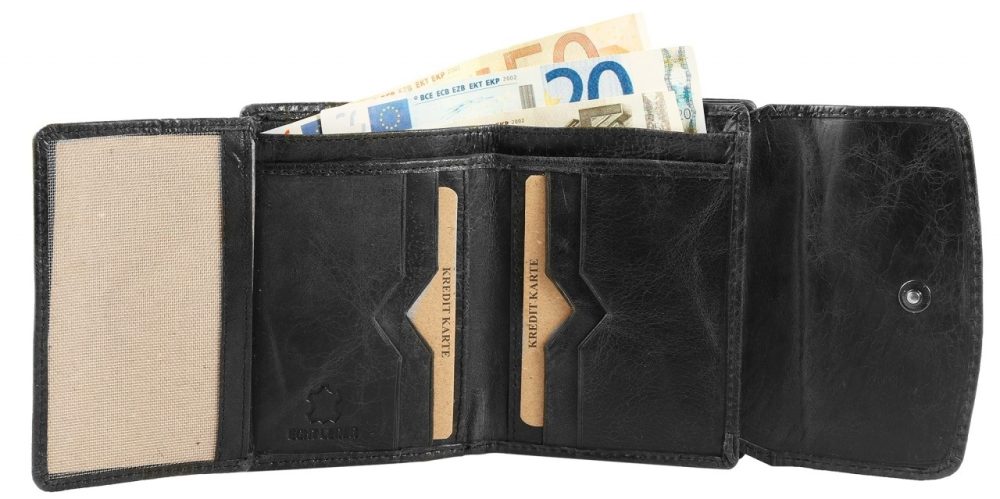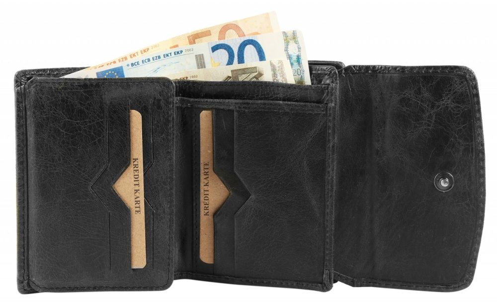 Carteira feminina Raptor confeccionada em couro genuíno. Tem 12 cm de largura e 9 cm de altura. É fechada com fecho de pressão. Possui 2 compartimentos para notas, 1 compartimento para moedas, 9 compartimentos para cartões e 3 compartimentos transparentes.
