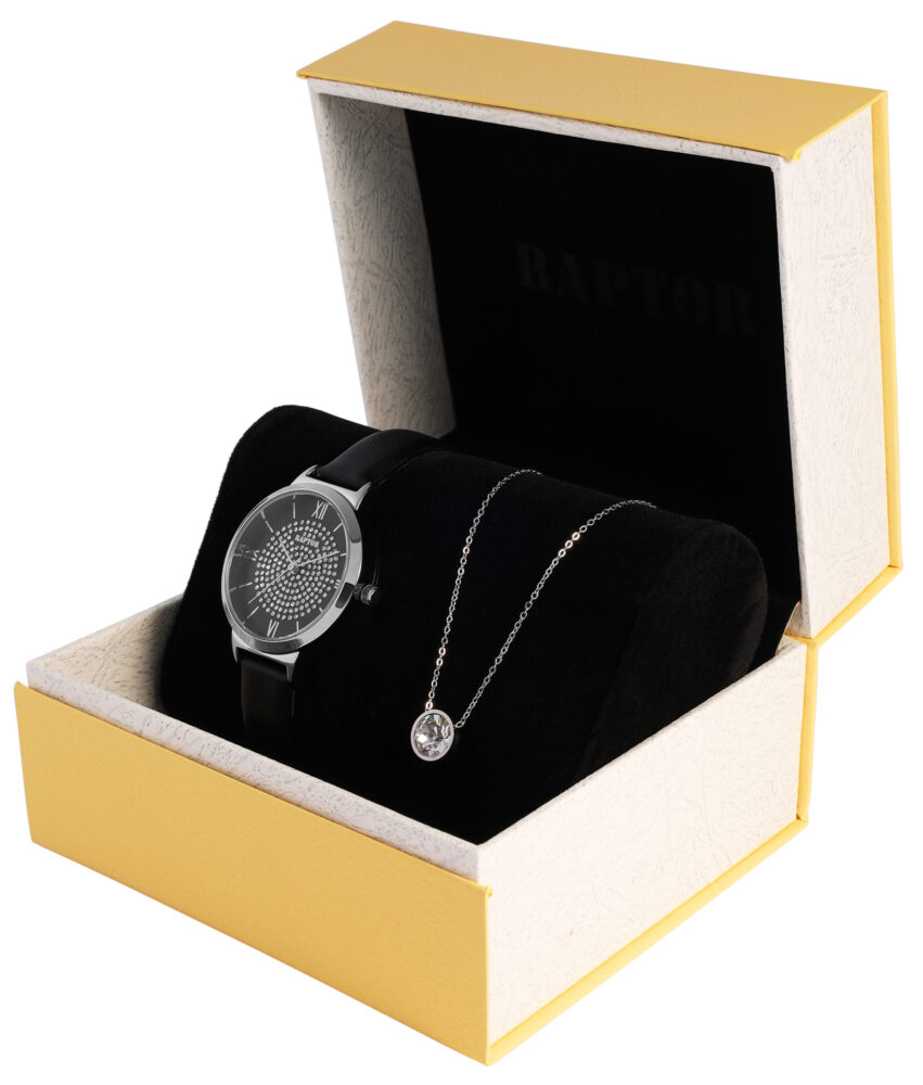 Conjunto Raptor para Mulheres oferece a combinação perfeita de um relógio marcante e um colar que harmoniza perfeitamente