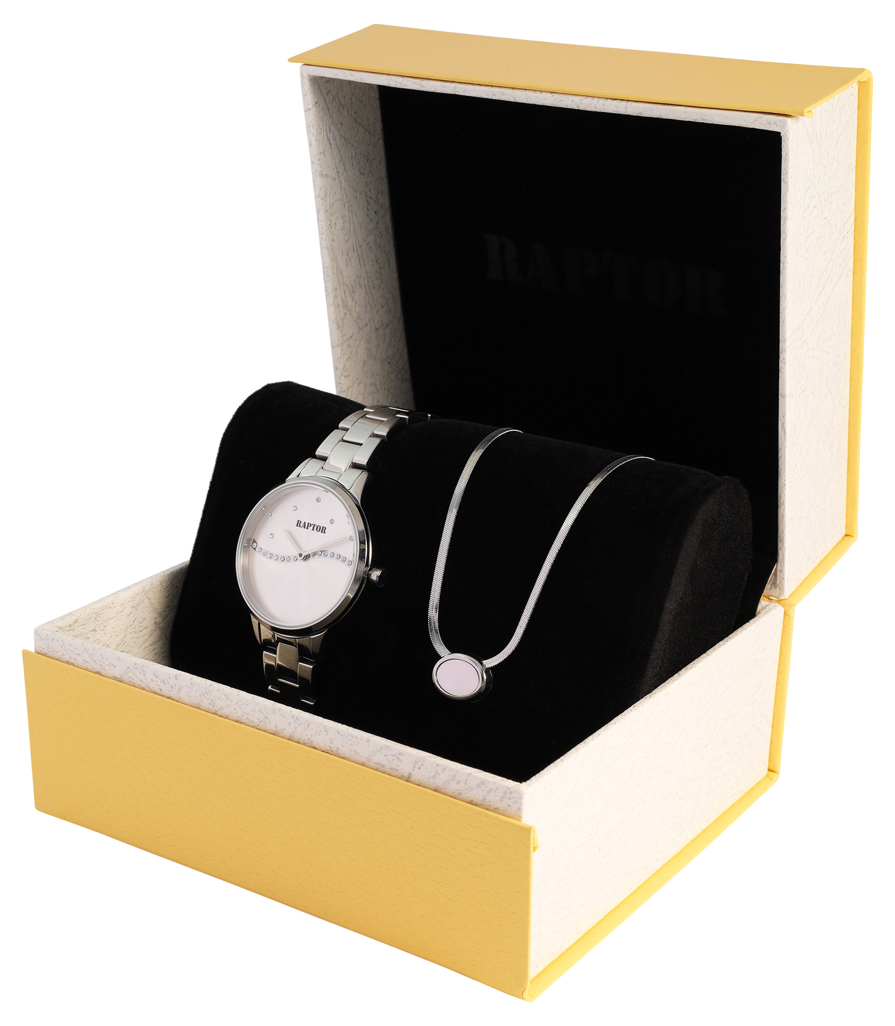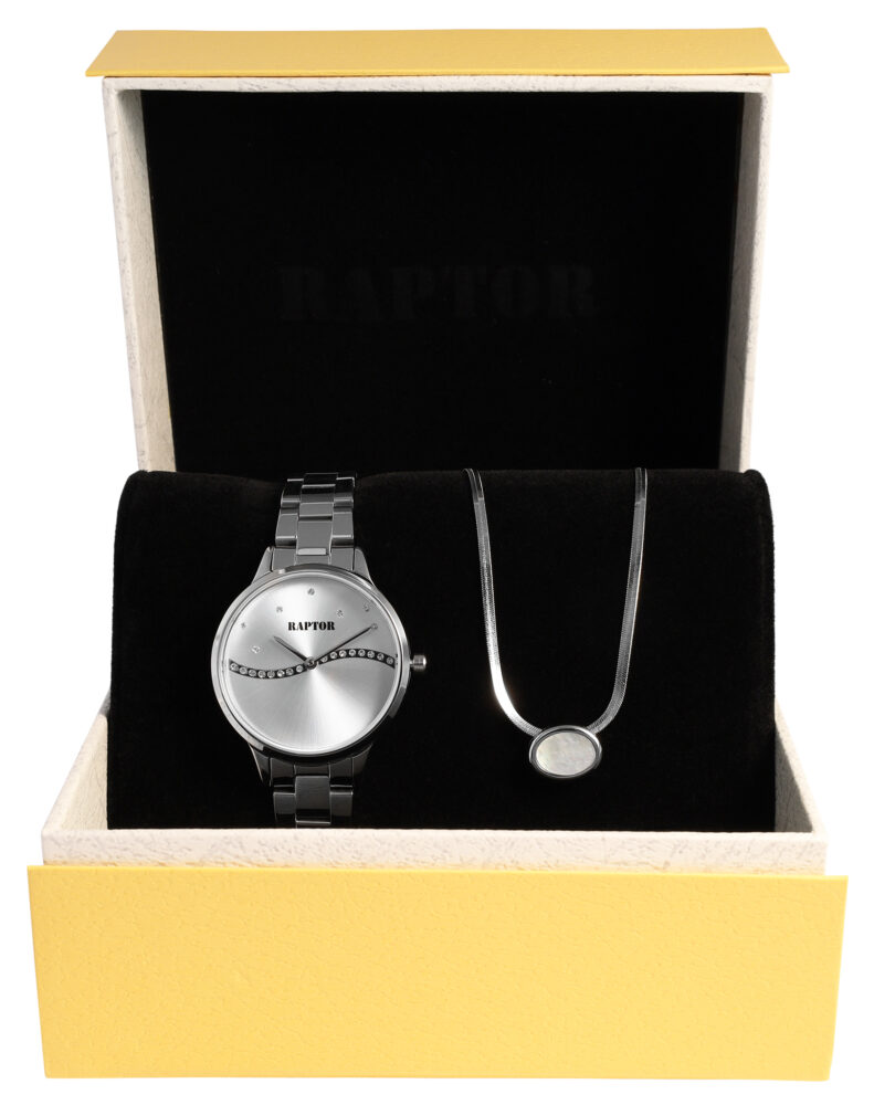 Conjunto Raptor para mulher oferece a combinação ideal de um relógio feminino elegante e uma joia.