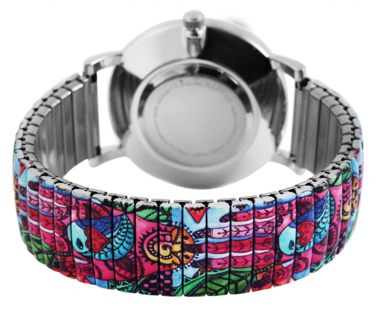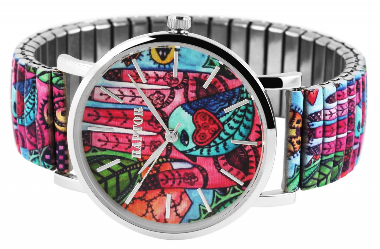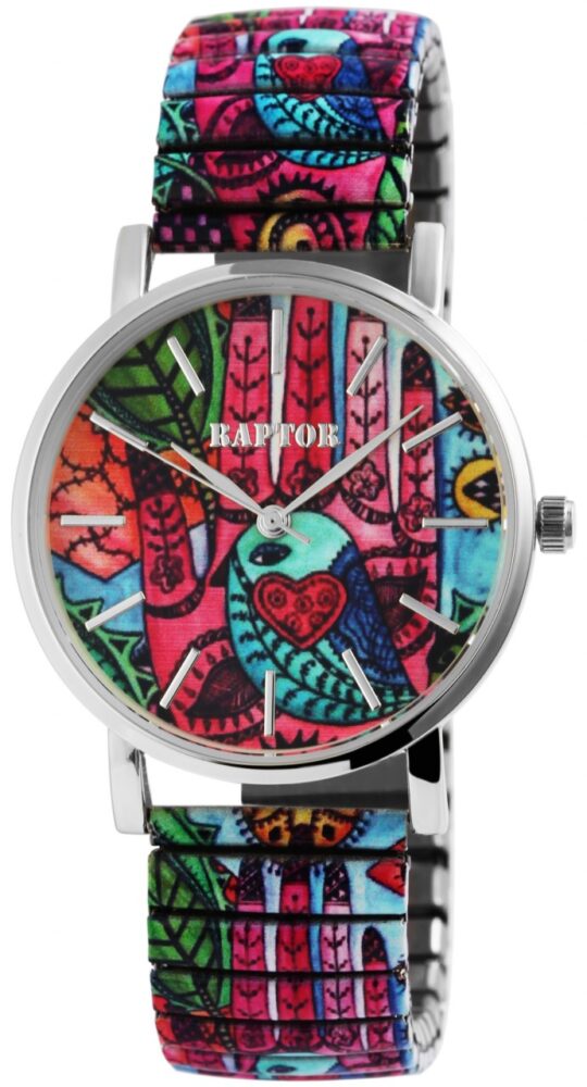 O relógio de pulso analógico de 3 ponteiros para senhora da marca Raptor possui um movimento de quartzo de alta qualidade. A prática bracelete em aço inoxidável tem 18 mm de largura no lug e é particularmente fácil de puxar sobre o pulso graças à bracelete flexível. O relógio é também muito confortável de usar graças à sua leveza e flexibilidade. O comprimento total do relógio é de 18,5 cm. O comprimento da bracelete pode ser ajustado para se adaptar a qualquer pulso. Os elementos podem ser acrescentados ou retirados. A caixa redonda em metal com vidro mineral tem um diâmetro de 36 mm e uma altura de 8 mm. O fundo da caixa é feito de aço inoxidável. Todos os relógios de pulso train são um destaque visual, uma vez que o padrão colorido da bracelete se reflecte no mostrador, tornando este relógio moderno num chamariz para todos os olhares. Os ponteiros e os marcadores das horas são da mesma cor e combinam bem com o aspeto geral do relógio. Em suma, é uma peça de joalharia indispensável que não deve faltar no pulso de ninguém.
