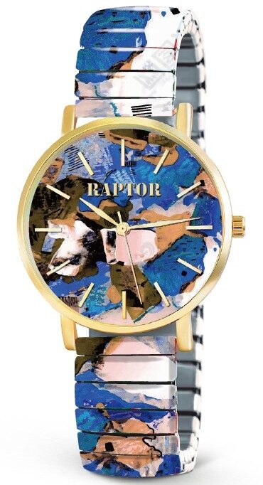 O relógio de pulso feminino analógico de 3 ponteiros da Raptor possui um movimento de quartzo de alta qualidade. A prática pulseira de aço inoxidável tem 18 mm de largura na extremidade e é particularmente fácil de puxar no pulso graças à pulseira flexível. Além disso, o relógio é muito confortável de usar devido à sua leveza e flexibilidade. O comprimento total do relógio é de 18,5 cm. O comprimento da pulseira pode ser ajustado para caber em qualquer pulso. Os elementos podem ser adicionados ou removidos. A caixa redonda de metal com vidro mineral tem um diâmetro de 36 mm e uma altura de 8 mm. O fundo da caixa é feito de aço inoxidável. Cada relógio de pulso é um destaque visual, porque o padrão colorido da pulseira se reflete no mostrador.