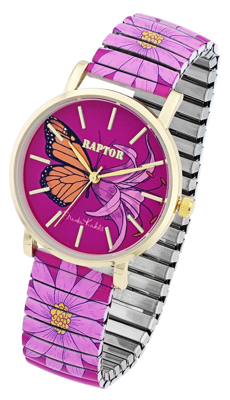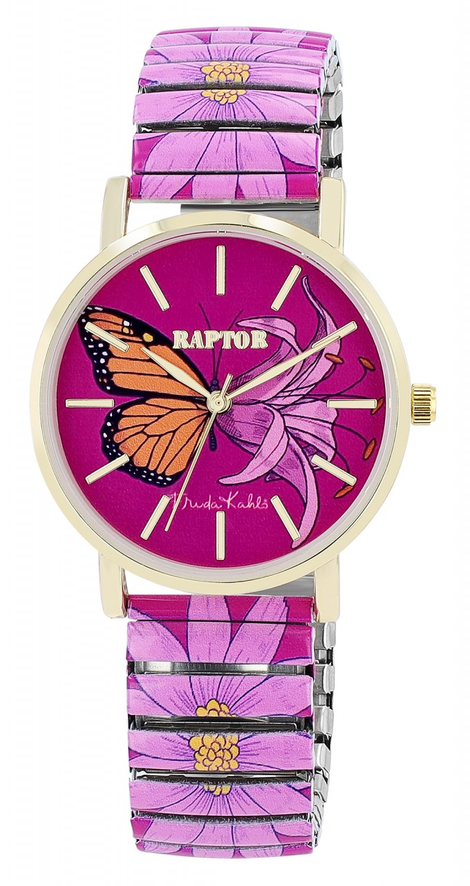 O relógio de pulso “Raptor X Frida Kahlo” apresenta a arte icónica e a personalidade da pintora mexicana de uma forma única. Este relógio é uma homenagem às cores vibrantes de Frida Kahlo, aos seus auto-retratos expressivos e à natureza caraterística das suas obras. O mostrador com índices de linhas apresenta-se como uma tela sobre a qual se desenrolam os motivos de Frida Kahlo. As cores incluem nuances vivas como o azul, o vermelho, o verde e o amarelo, que se encontram perfeitamente organizadas. Neste esplendor, há referências aos famosos quadros de Frida Kahlo. Os pormenores artísticos conferem ao relógio de 3 ponteiros uma identidade artística inconfundível e fazem dele um grande chamariz. A bracelete em aço inoxidável tem 18 mm de largura e confere ao relógio um aspeto robusto. Com um comprimento total de 18,5 cm, o relógio garante um ajuste confortável em qualquer pulso.