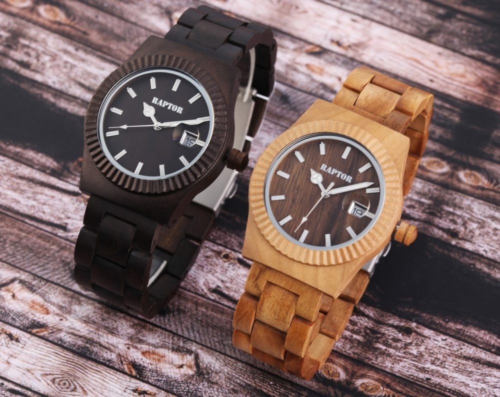 O relógio de senhora analógico da marca Raptor tem um Miyota 2115 e a designação do modelo é RA092. A bracelete em madeira tem 20 mm de largura e abre-se com um fecho desdobrável em aço inoxidável. O comprimento total é de 20 cm. A caixa de madeira com vidro mineral mede 41 mm e tem 12 mm de altura. A tampa da caixa é feita de madeira. O relógio Raptor para homem tem as seguintes características: Indicação da data. Receberá os seguintes acessórios com o seu produto: cartão de garantia, caixa original e manual de instruções.