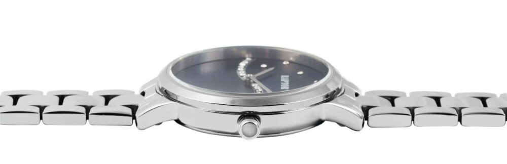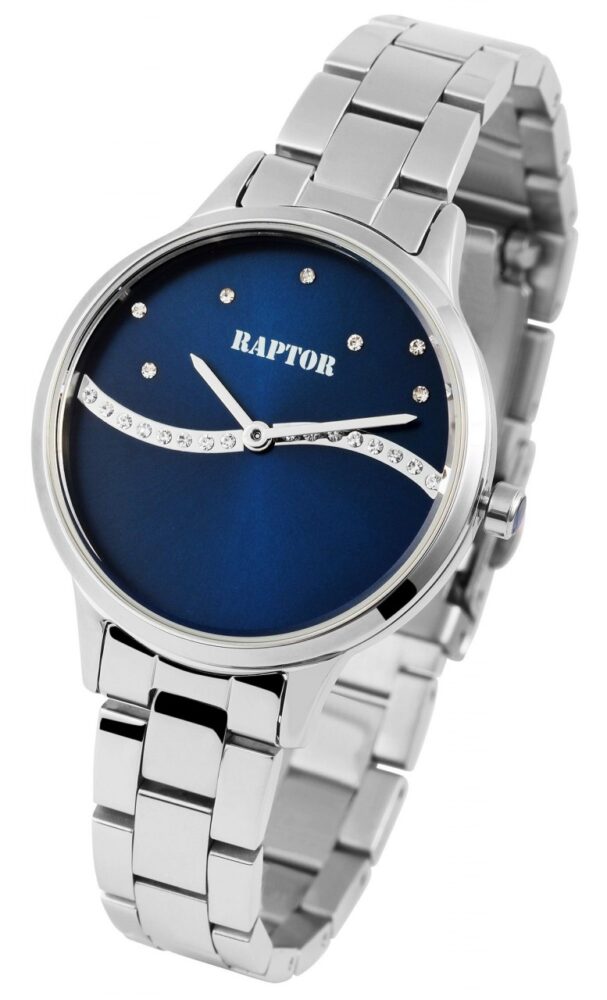 O relógio de pulso feminino analógico de 3 ponteiros da marca Raptor possui o movimento de quartzo Miyota Y120 de alta qualidade. A pulseira em aço inoxidável tem 14 mm de largura na alça e pode ser aberta e fechada com um fecho dobrável em aço inoxidável. O comprimento total do relógio é de 21 cm. A caixa de metal com vidro mineral tem um diâmetro de 34 mm e uma altura de 9 mm. Um destaque especial é o mostrador, que apresenta uma fina onda de pedras brilhantes que o atravessam. Acima da onda de glitter há strass colocados individualmente. O fundo da caixa é feito de aço inoxidável. Como acessório do seu produto, você receberá um cartão de garantia da marca Raptor e caixa original.