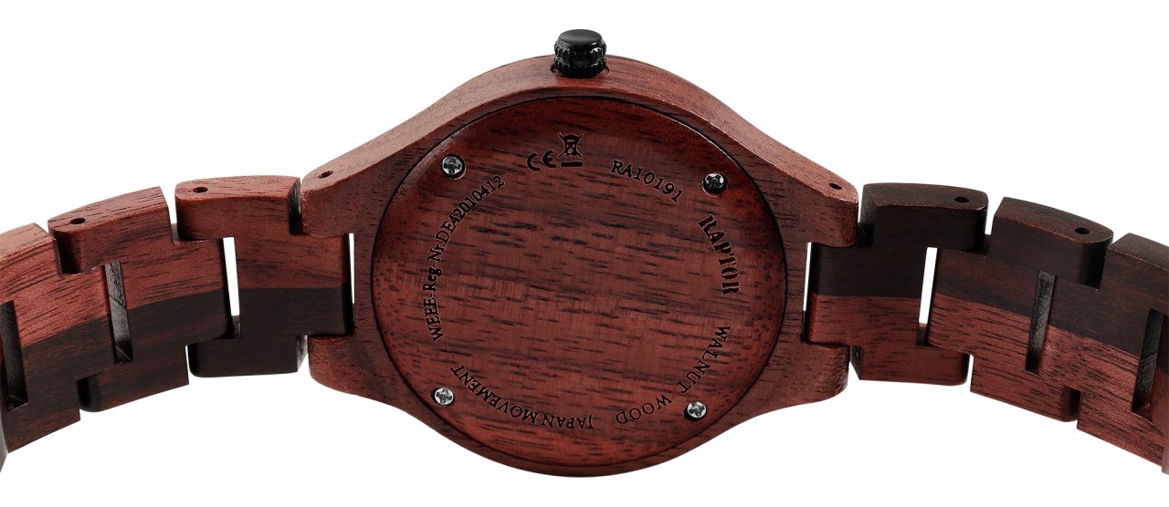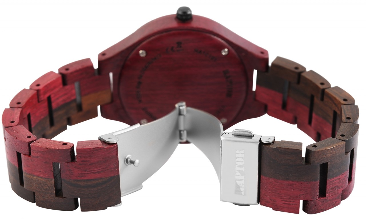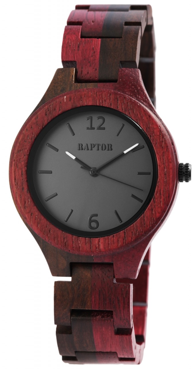 Relógio feminino de madeira da marca Raptor, pulseira de madeira com fecho dobrável em aço inoxidável, display analógico, vidro mineral especialmente endurecido que protege o mostrador de influências externas. Ótima ideia de presente para qualquer ocasião